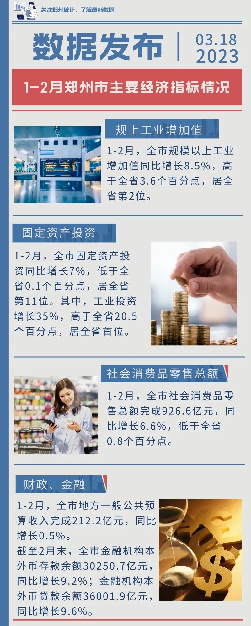 郑州公布前两月主要经济指标:金融机构本外币存款余额超3万亿元