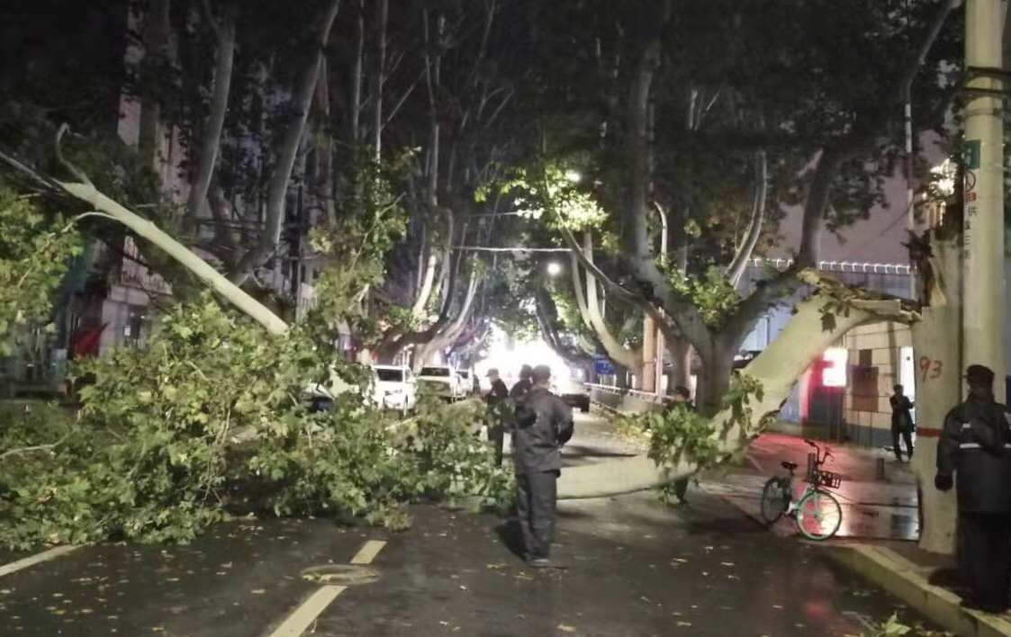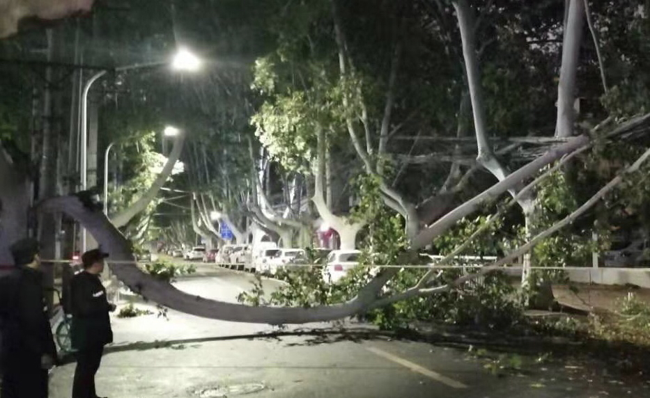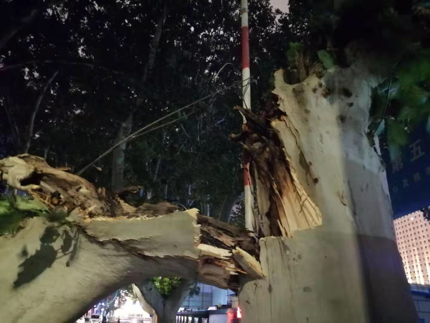 风雨中,老法桐树干裂开,50多厘米粗的侧干断裂坠落