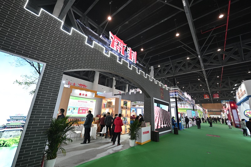 开封的“城墙”,被搬到了农交会的现场;南阳展区搭建也透露着“楚风汉韵”,还把“一个值得三顾的地方”这句话,打在了最显眼的位置;信阳展区里,茶桌茶台一应俱全……