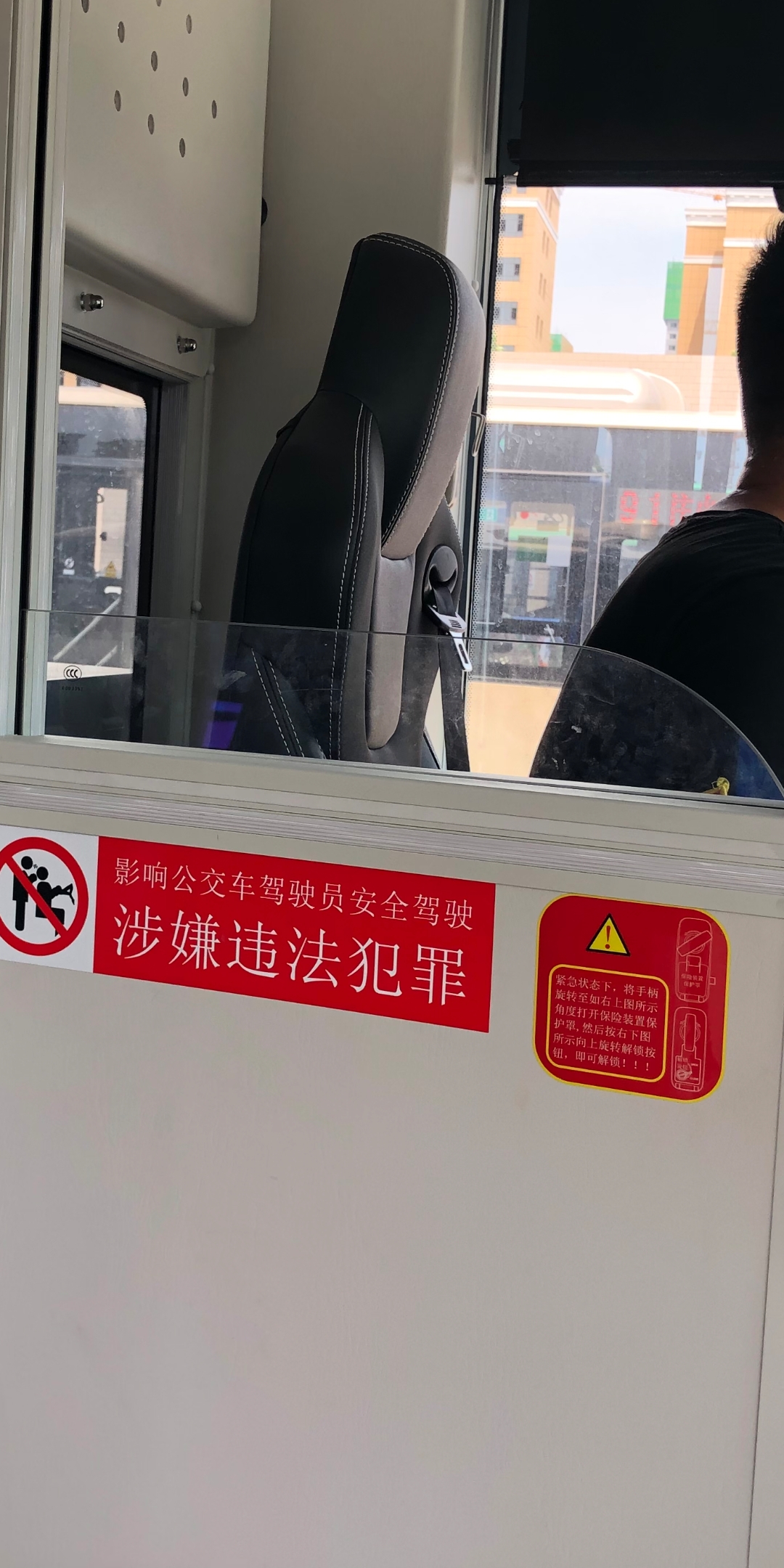 对于这批新引进投用的公交车辆,大河报•大河客户端最关注的还是车辆运营安全的方方面面。其中一个就是,万州事故后,郑州公交能否在所有车辆显著位置张贴安全警示标语?这不,这些新引进车辆上均有“影响公交车驾驶员安全驾驶涉嫌犯罪”的红色警示标识非常醒目。而它就张贴在驾驶室的门上,赫然醒目。除这些文字外,还在旁边配上了示意图,警示大家。另外一个就是,公交驾驶室的安全防护门,新增车辆全部安装了可升降门,车长专心安静驾驶时可以把门升起来以做防护,遇到乘客有问题时,可以将其摇下来和乘客沟通对话,灵活自由,又更加安全。而这两点,正是万州公交事故后,大河报•大河客户端一直独家呼吁报道的,目前,在郑州公交上,都已成为现实。那么,目前郑州这种张贴了警示标语、驾驶室门提升改造的车辆共多少?以前的那些公交车辆会不会也陆续改造提升,张贴警示标语和安装可升降的安全驾驶门?