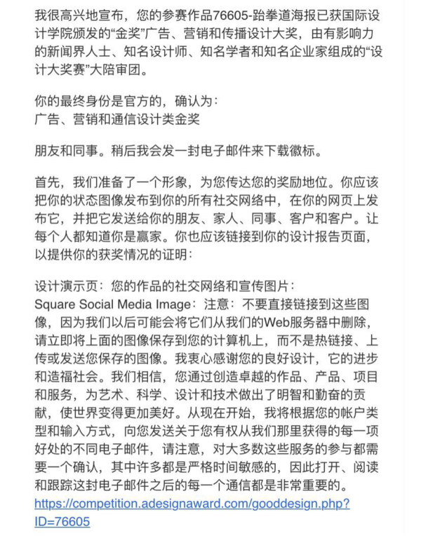 据了解,意大利A'DesignAward国际大奖是一项被国际平面设计协会联合会ICOGRADA、欧洲设计协会BEDA认可的国际年度设计赛事,每年都会吸引全球近百个国家和地区的创意机构参与。本届A'DesignAward奖由大河全媒体打造的“跆拳道”“芭蕾舞”以优秀的创意、创造性的设计,在具有国际影响力的业界权威学者、创意设计专家、杰出媒体人士和资深企业家的匿名评审投票与谨慎评估下,从99个参与国家和地区所报送的4万余件作品中脱颖而出,一举斩获广告设计类金奖,又一次用实力领跑了行业的发展。