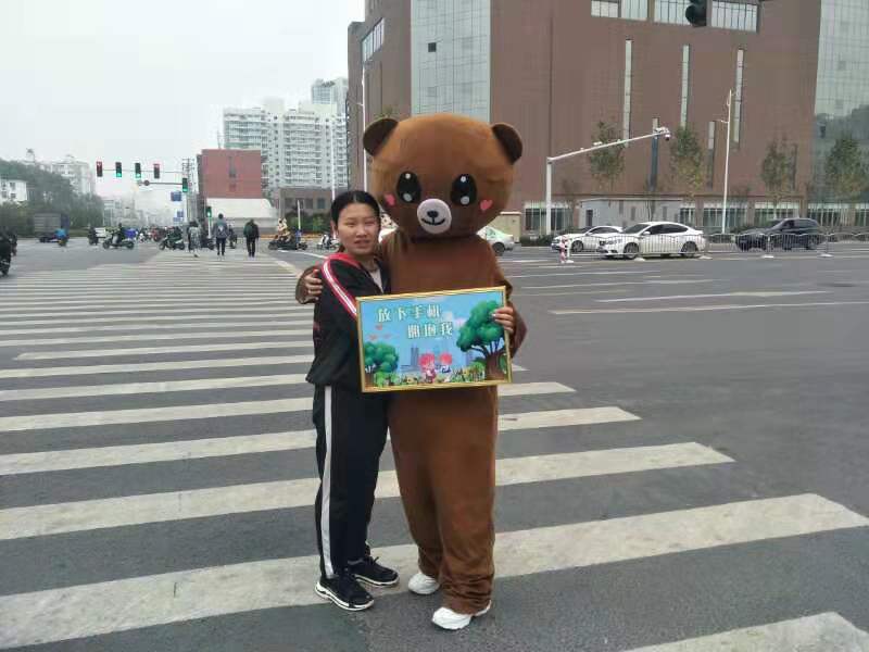 扮演憨厚大熊的志愿者是B101路车长贺琳蜜,也是这次活动的策划者和实施者。她说自己坐在公交车驾驶位上过路口时,总会看到行人,甚至是电动车驾驶人边看手机边过马路,情况非常危险,存在严重的安全隐患,自己心里都替他们捏着一把汗,于是自己就想到“放下手机,拥抱我”的志愿活动。