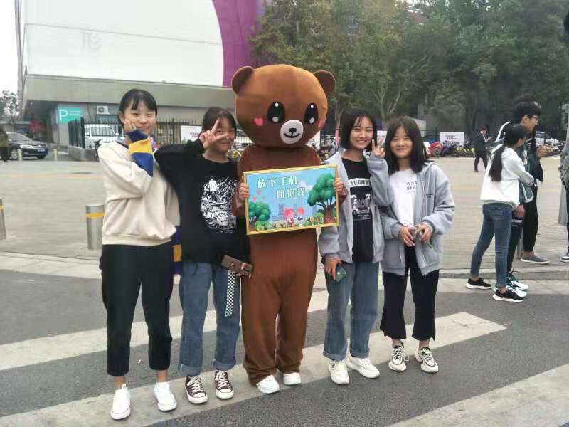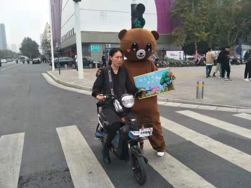 10月23日上午12时30分许,一只可爱憨厚的“大熊”,出现在郑州市航海路京广路路口,它手里举着“放下手机,拥抱我”的牌子,向每位看着手机过马路的行人索取拥抱。
