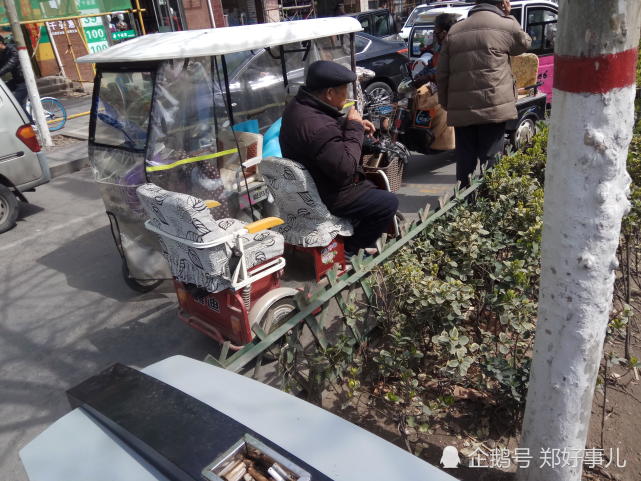 3月20日,在河南开封大梁路上,两辆电动三轮车相互刮蹭,一位大爷三轮车上的塑料棚被另一位逆向而行的大爷蹭烂。