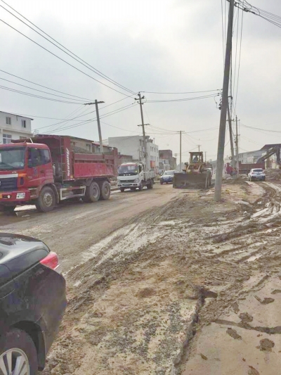 在市民反映的施工现场,记者看到施工路段南北两侧正在挖雨水渠和铺设地下管道,随处可见一米多深的长距离路坑,中间仅两米宽的通行道路上,电动车、汽车和挖掘机混乱行驶,路人穿梭其中,非常危险。不仅如此,每当有车辆驶过,黄土漫天乱飞,路人和汽车瞬间被尘土包围。