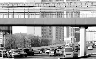 上午10时11分,一名身穿黑色外套的女子从卫星路北向南横穿卫星路快速路。卫星路很宽,共有12排车道,女子每横穿三排车道都需要在隔离带上站着等 待,有时已经迈上机动车道,看到机动车快速开来,只好退回来。该女子横穿卫星路共用4分半,而且数次穿行被机动车逼回,危险异常。记者观察15分钟,有两 人横穿卫星路,有22人从天桥通过。