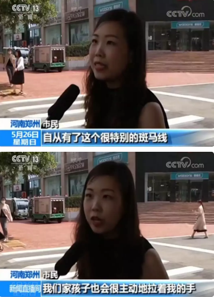 行人们也被这条新奇的斑马线吸引,主动利用斑马线有序通过