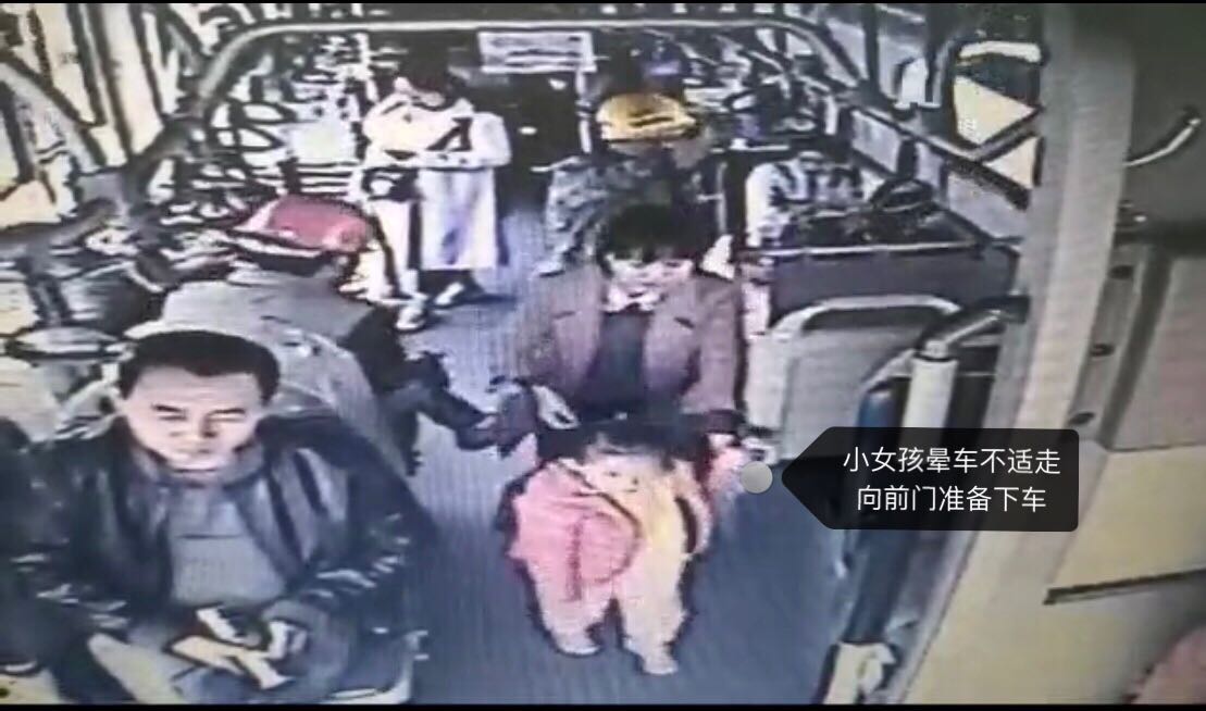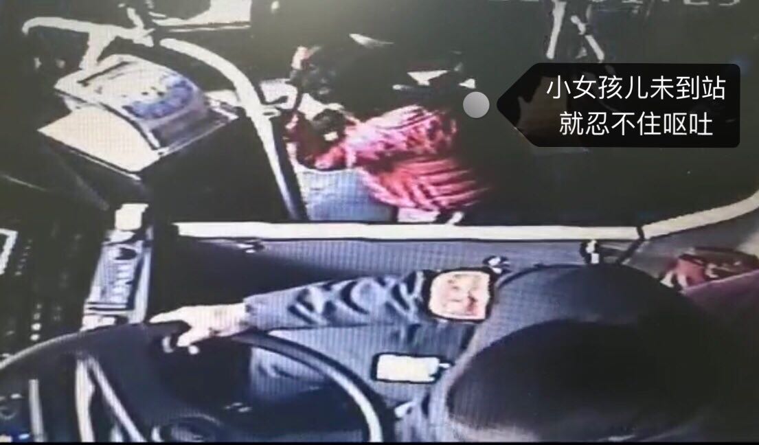 “我的孩子晕车不舒服,让她站到前面好一点,下一站我们下车”。