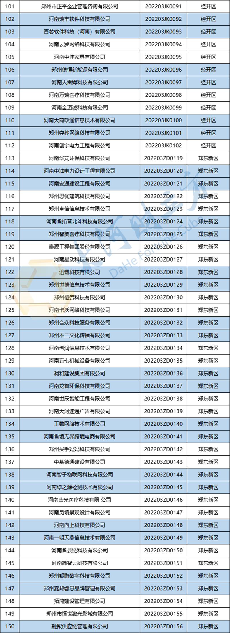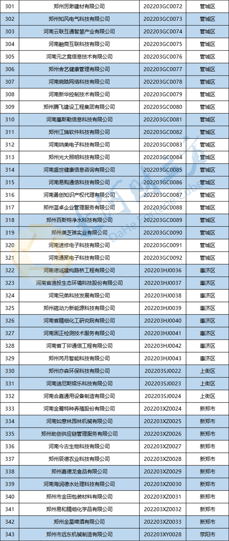名单显示,按区域来看,本次入库的郑州市科技型企业中,高新区97家、经开区15家、郑东新区49家、航空港区10家、金水区70家、二七区18家、中原区28家、管城区34家、惠济区8家、上街区3家、新郑市10家、荥阳市17家、新密市7家、登封市5家、巩义市11家、中牟县1家。