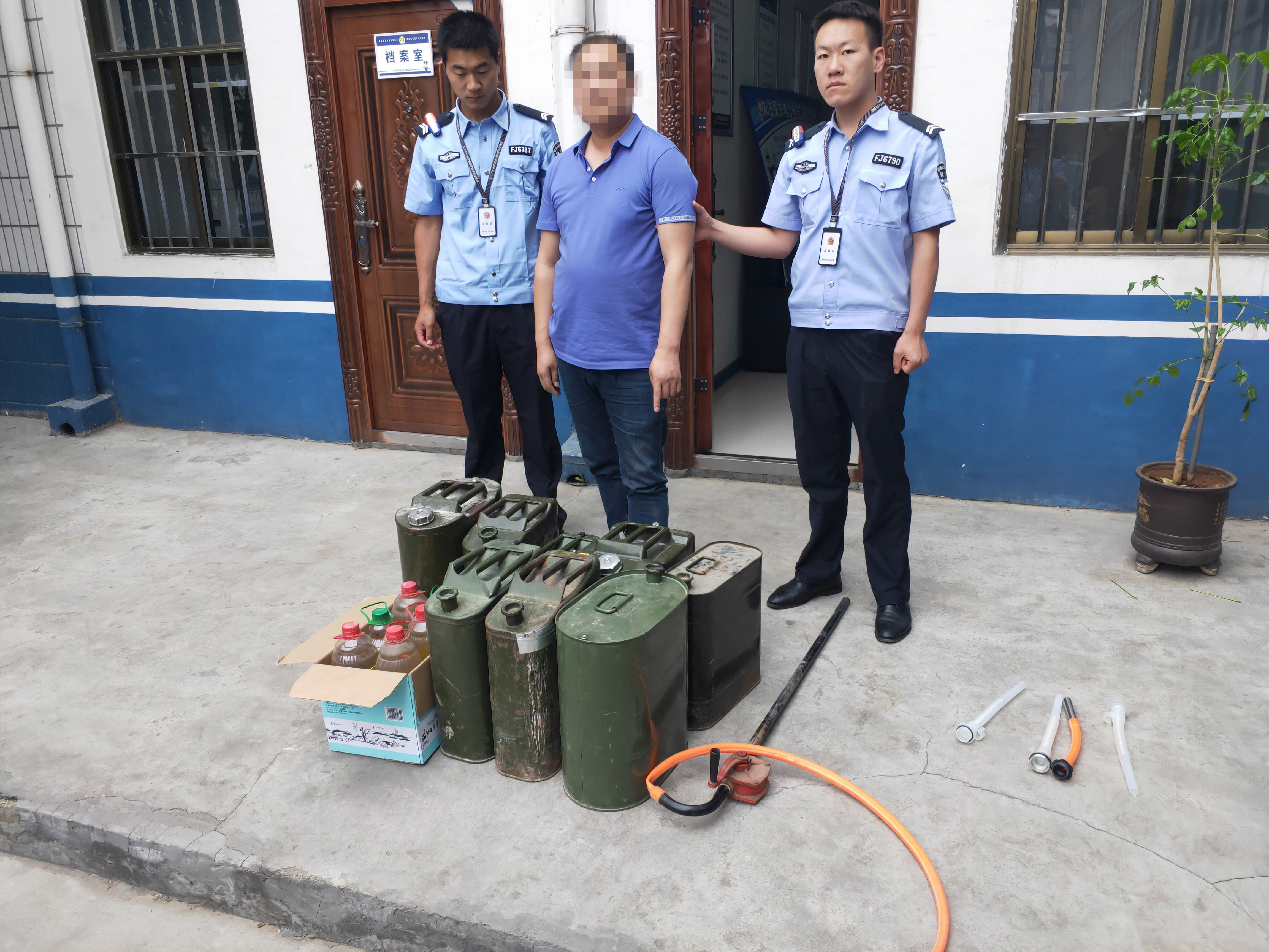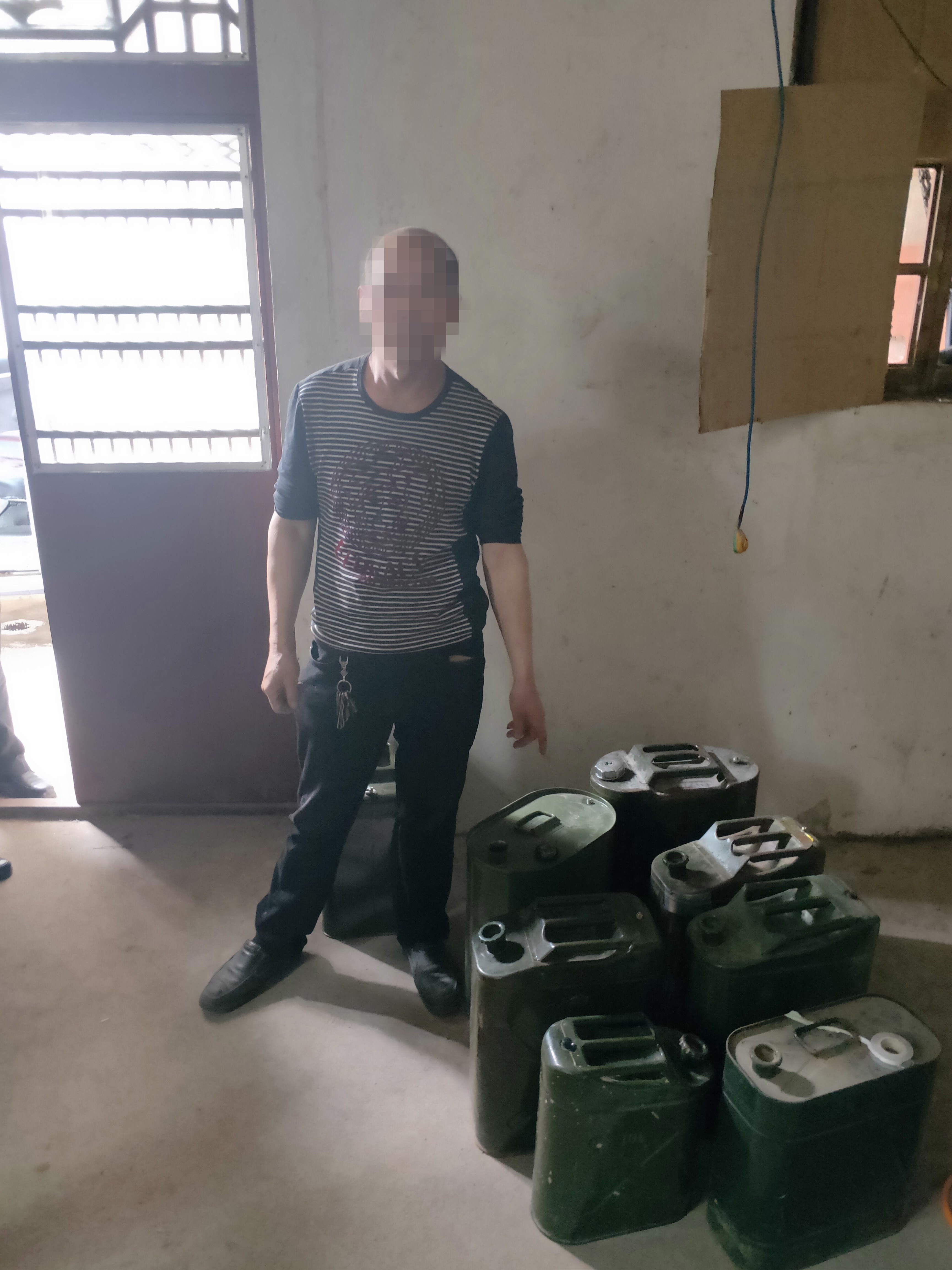 5月24日,新密市公安局刘寨派出所民警王灏翔、付华敏在刘寨镇崔岗村入户走访时,刚走到辖区王某升家中,就闻到一股刺鼻的味道,且家中的院子地上还摆放着几个塑料桶。当民警问桶内装的什么时,王某升眼神闪躲,说话支支吾吾,十分可疑。民警打开塑料桶一看,原来里面装的是汽油。进一步检查发现,王某升家中油桶8个,加油工具4个,95汽油105升,遂将王某升传唤到派出所接受调查。