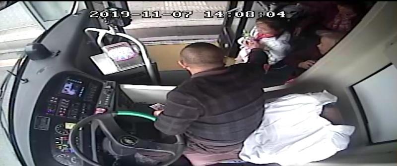 紧接着,车辆又继续行驶,从车厢后面又走上前来一位年龄稍微大一些的乘客,一边对着车长拍照,一边说:“你真是个好人,我要把你拍下来,发个朋友圈,都来给你点赞。”