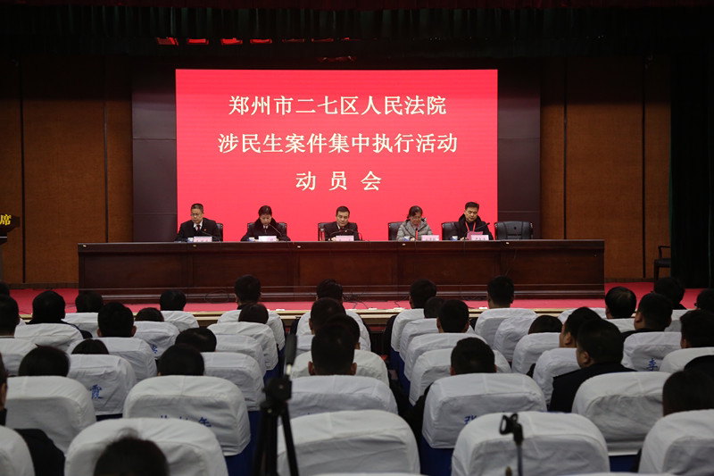 活动开始前,法院举行了动员会,二七法院党组书记、院长王炅、党组副书记、副院长宋晔指挥执行活动。