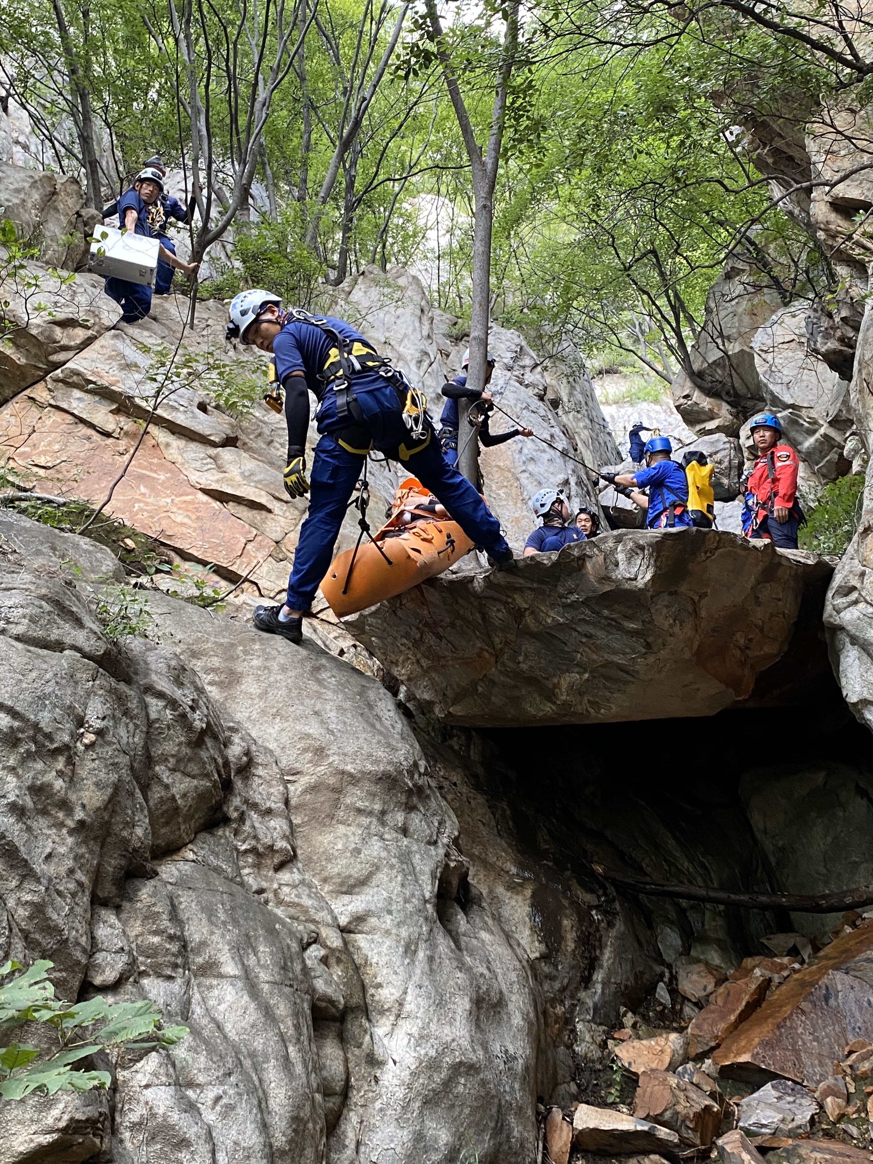 救援人员告诉记者,张先生坠崖的地方,是嵩山救援联合会日常训练的基地之一,救援队员们很熟悉这里的每一处地方及所有救援细节。在此次救援过程中、队员们采取了七次担架下降转换,每一次的操作都非常细致。