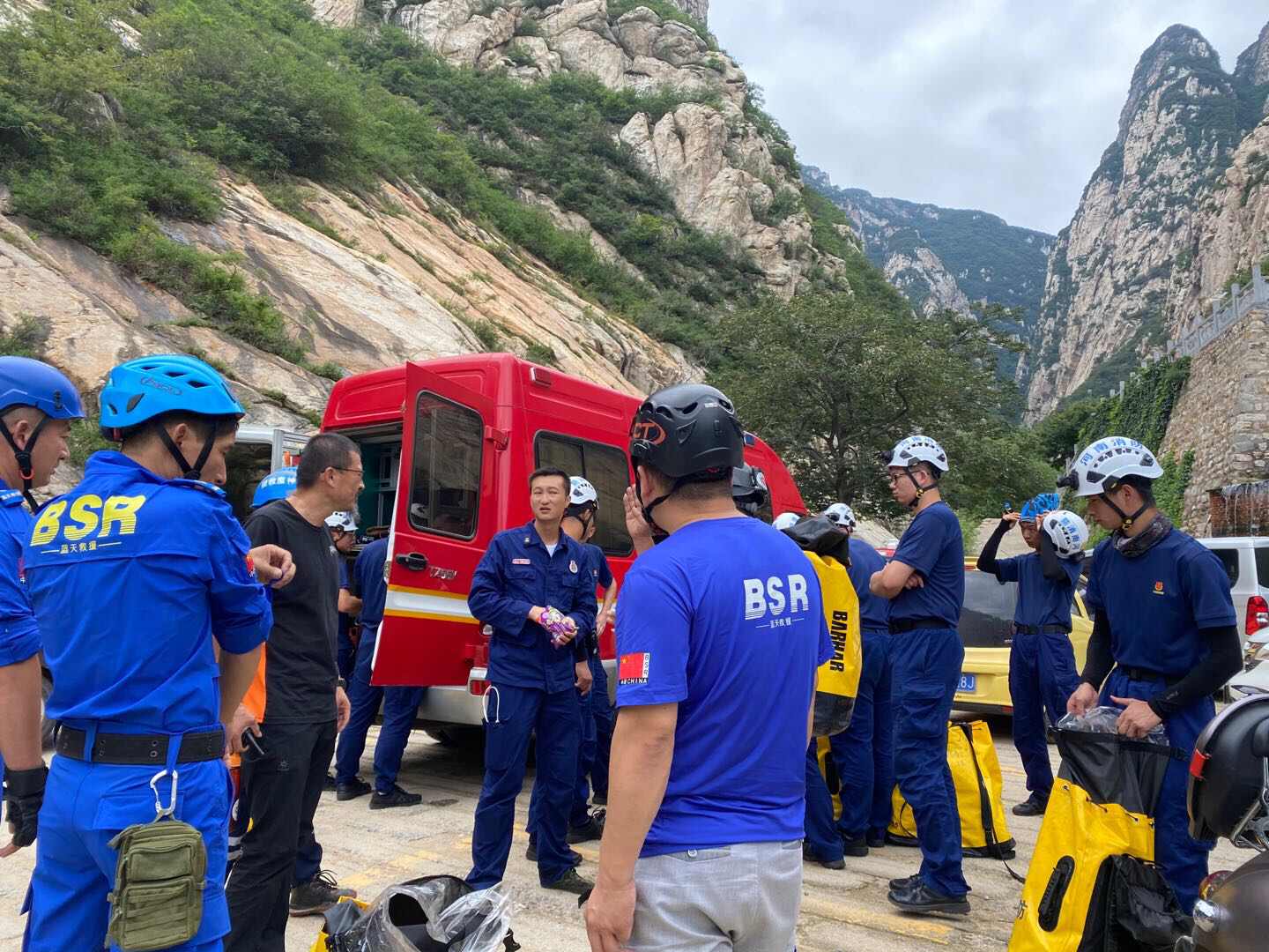 上午11时10分,嵩山消防救援站、中国洞穴救援联盟(CRC)、神鹰救援登封大队、登封户外救援队、登封蓝天救援队的救援人员在玉皇沟停车场集合完毕,开始商议制定营救方案。