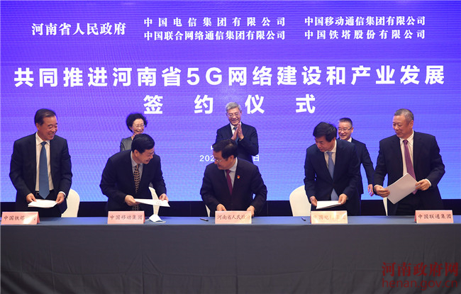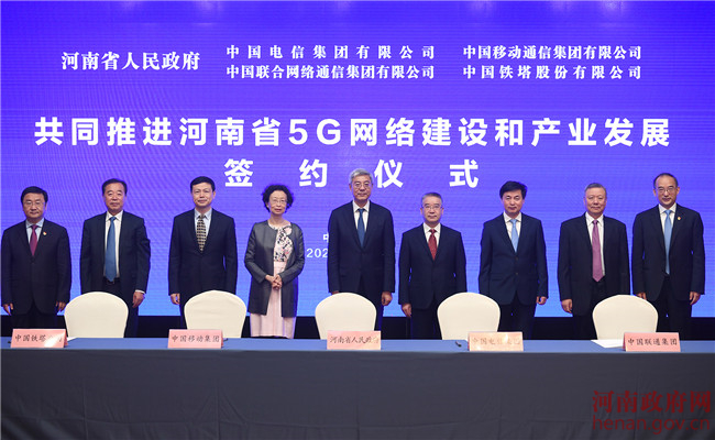 5月29日上午,河南省人民政府在北京举行与中国电信集团有限公司、中国移动通信集团有限公司、中国联合网络通信集团有限公司、中国铁塔股份有限公司共同推进河南省5G网络建设和产业发展协议签署仪式。省长尹弘发表致辞,表示此次签约活动标志着河南5G建设迈入新的发展阶段。希望各方进一步加大对河南的支持力度,推动基础设施、产业项目、应用场景及研发机构加快发展,推进新技术、新标准在河南先行先试。河南将一如既往支持各大通信运营企业在豫发展,共同分享5G发展带来的红利。据了解,下一步我省将与各方在建设5G精品网络、加快5G技术创新、推动5G产业发展、拓展5G场景应用等方面进行深入合作,为经济高质量发展注入新动能。(文/李鹏 图/杜小伟)