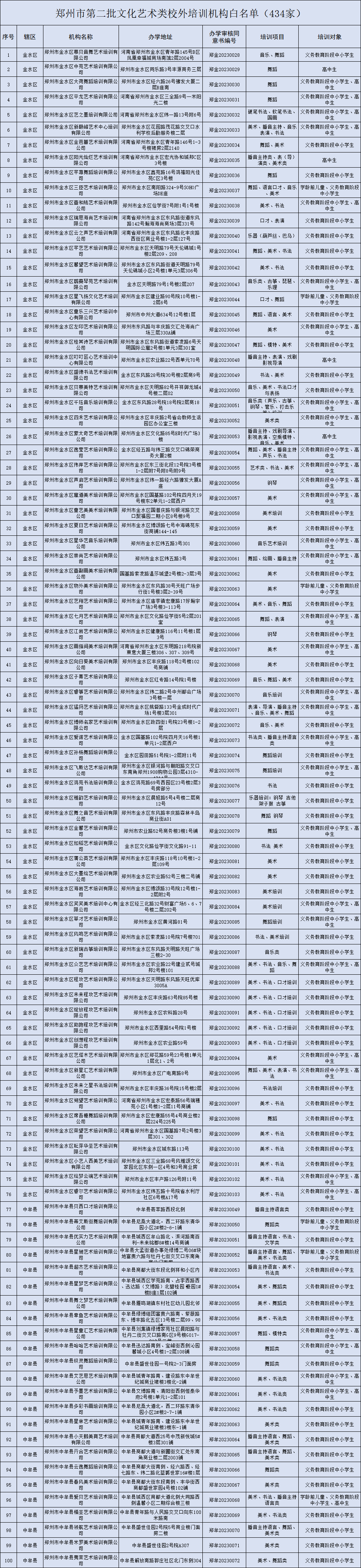 434家!郑州市第二批文化艺术类校外培训机构白名单发布→