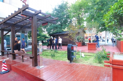 民主路街头的“口袋公园”,是附近居民休闲娱乐的好去处 河南商报记者邓万里/摄