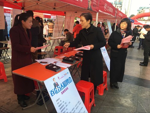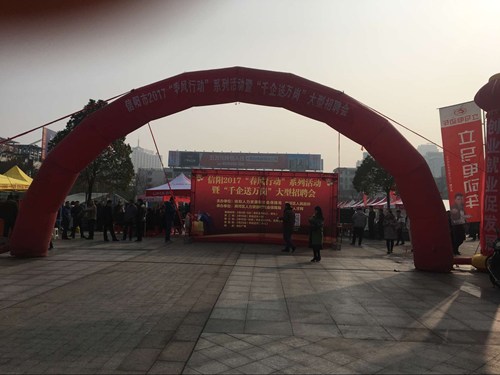 2017年2月4日至5日,由信阳市残联、市人社局联合举办的以“就业帮扶 真情相助”为主题的2017“春风行动-千企送万岗”百场大型招聘活动在体彩广场正式启动。县区残联也根据人社局安排的活动时间,在当地积极参与、共同发起。