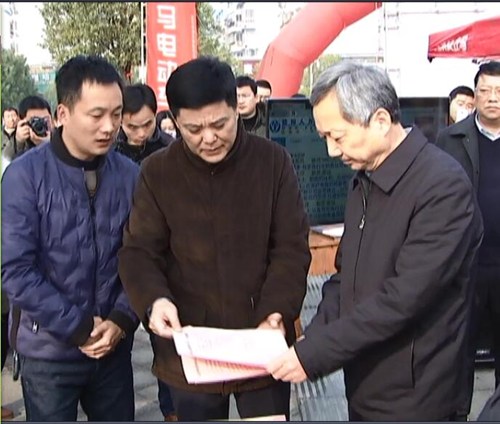图为尚市长翻阅现场分发的宣传单页