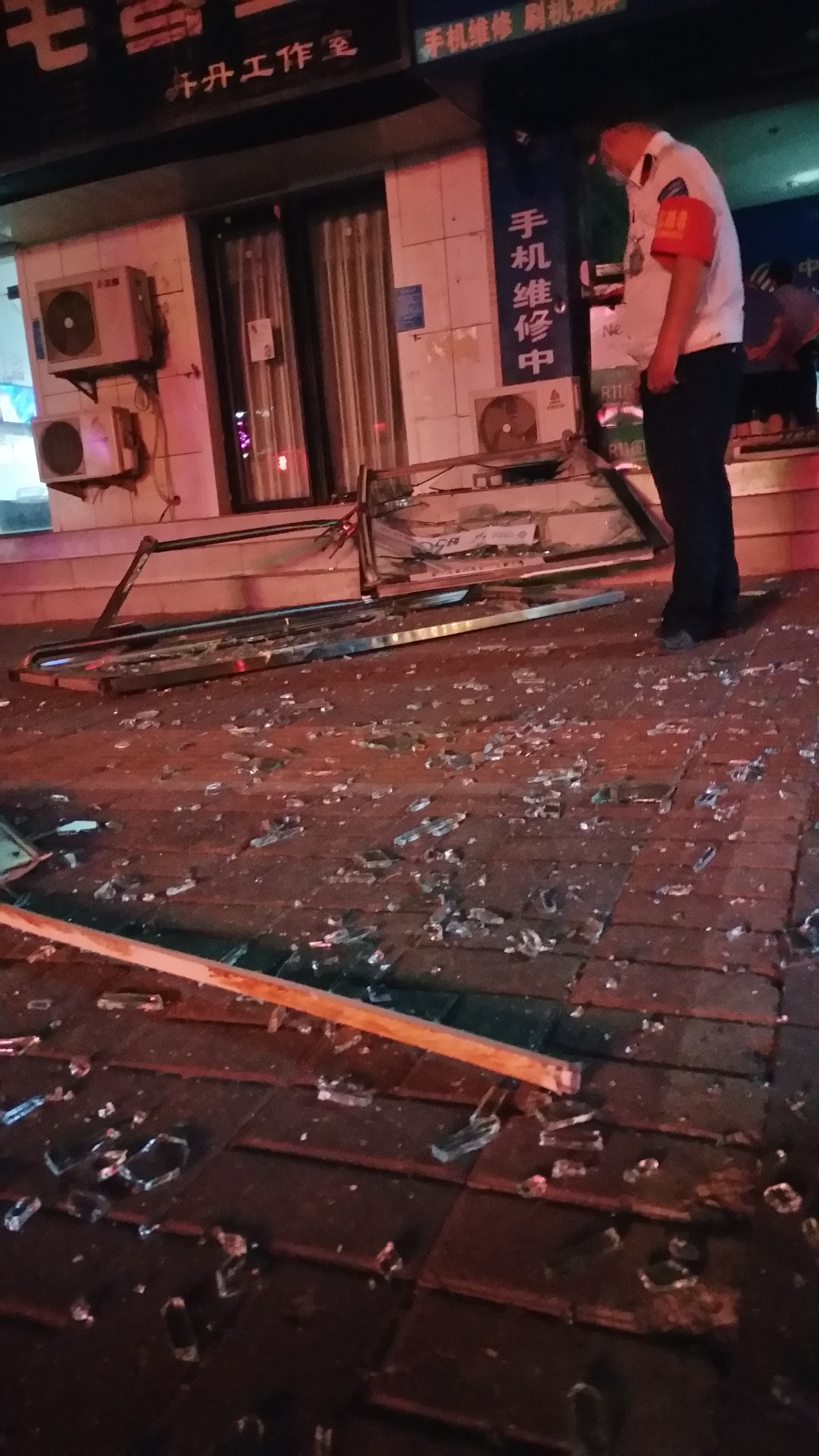 手机维修店夜晚发生爆炸,两扇玻璃门被炸飞