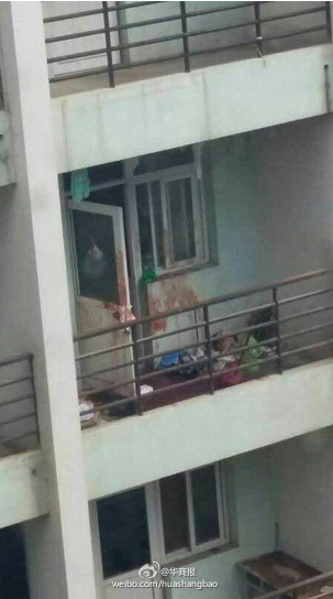 根据网友提供的照片显示,事发宿舍楼阳台有血迹,宿舍里比较凌乱。