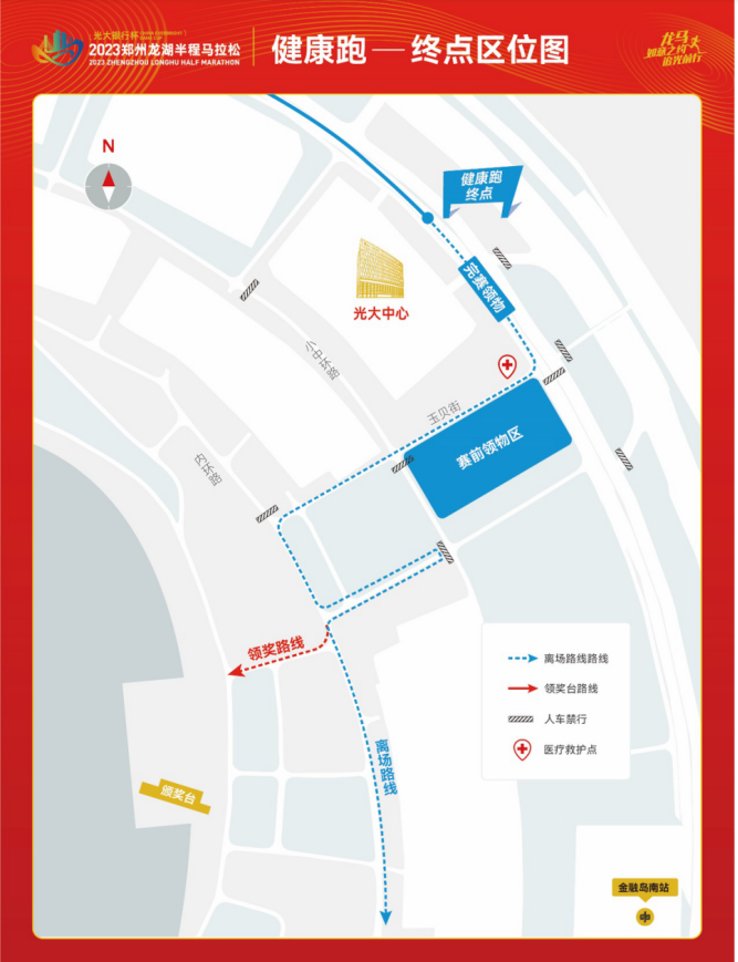 参赛选手请于2023年4月6日至4月8日每天10:00-20:00(8日截止到21:00),前往龙湖金融岛郑州光大中心领取号码布、存衣包等物品。