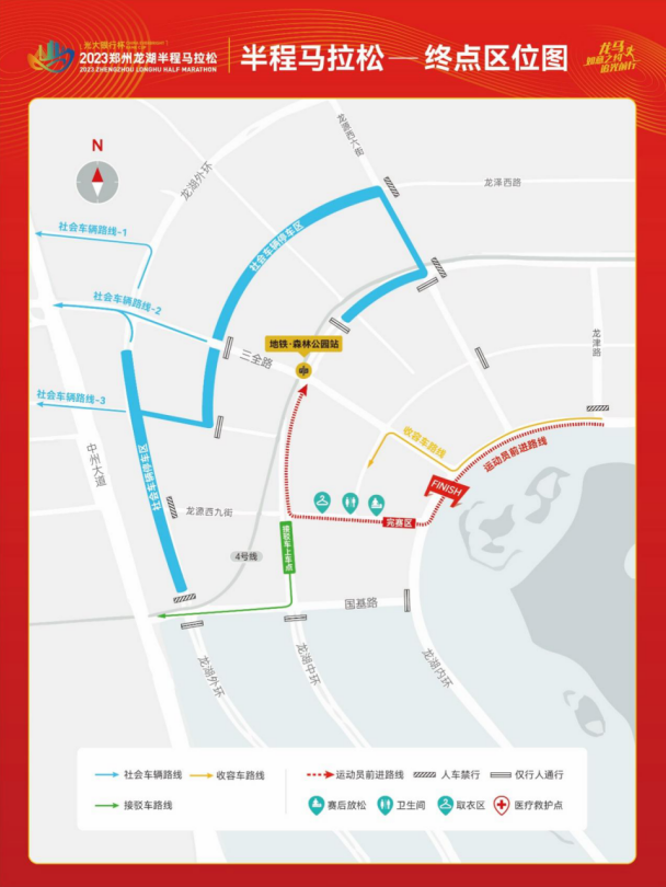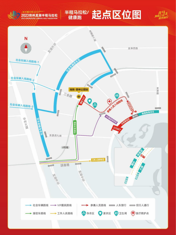 半程马拉松集结区域:三全路与龙湖内环北路交叉口——龙源西六街与龙湖内环北路交叉口。健康跑集结区域:龙源西六街与龙湖内环北路交叉口——龙津路与龙湖内环北路交叉口。
