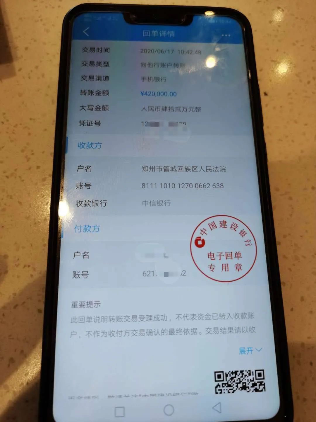在强大的执行压力面前,周某玺、张某丽夫妇当场将420000元转至管城法院账户,并约定剩余80000元一周内还清。