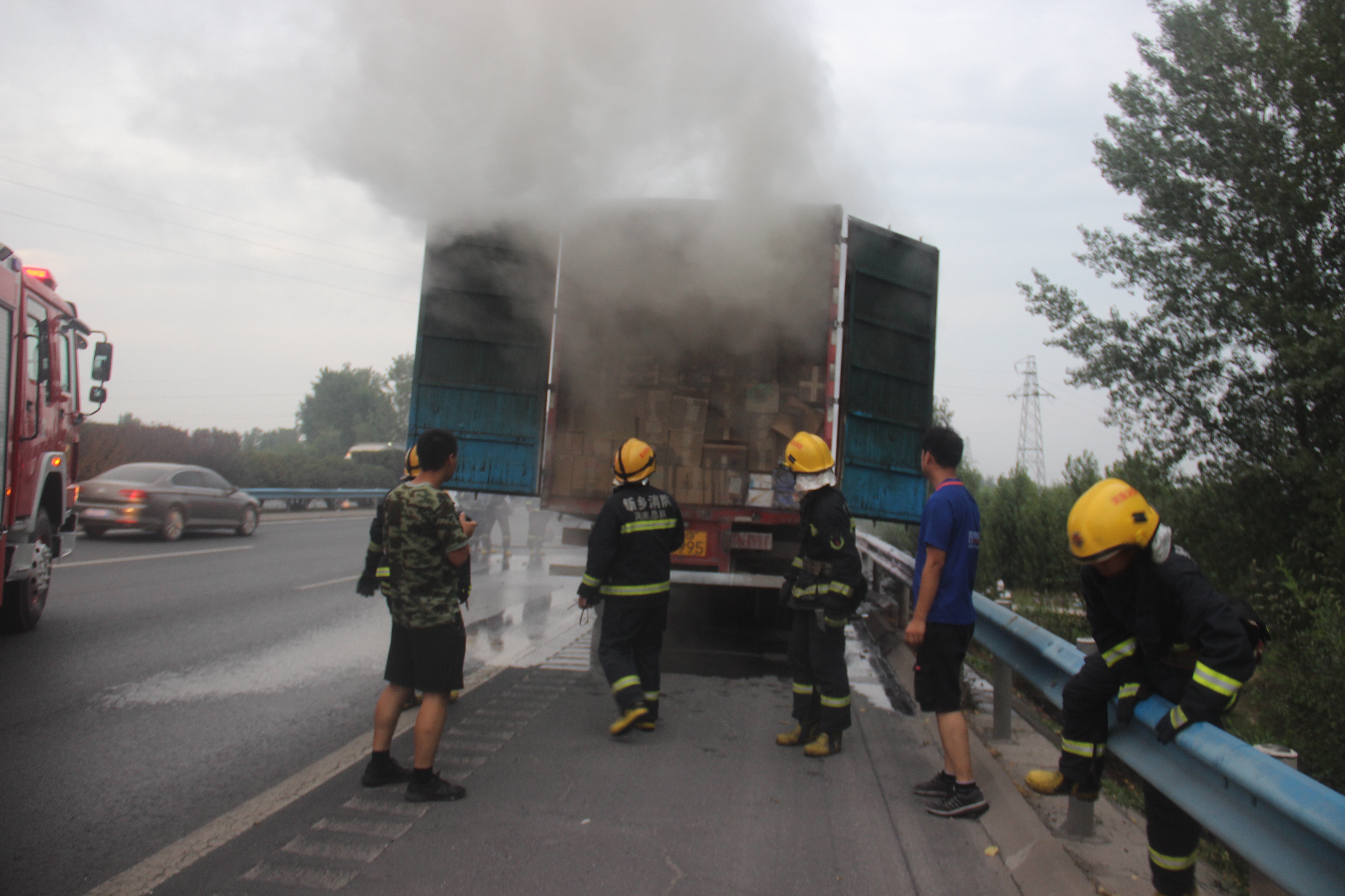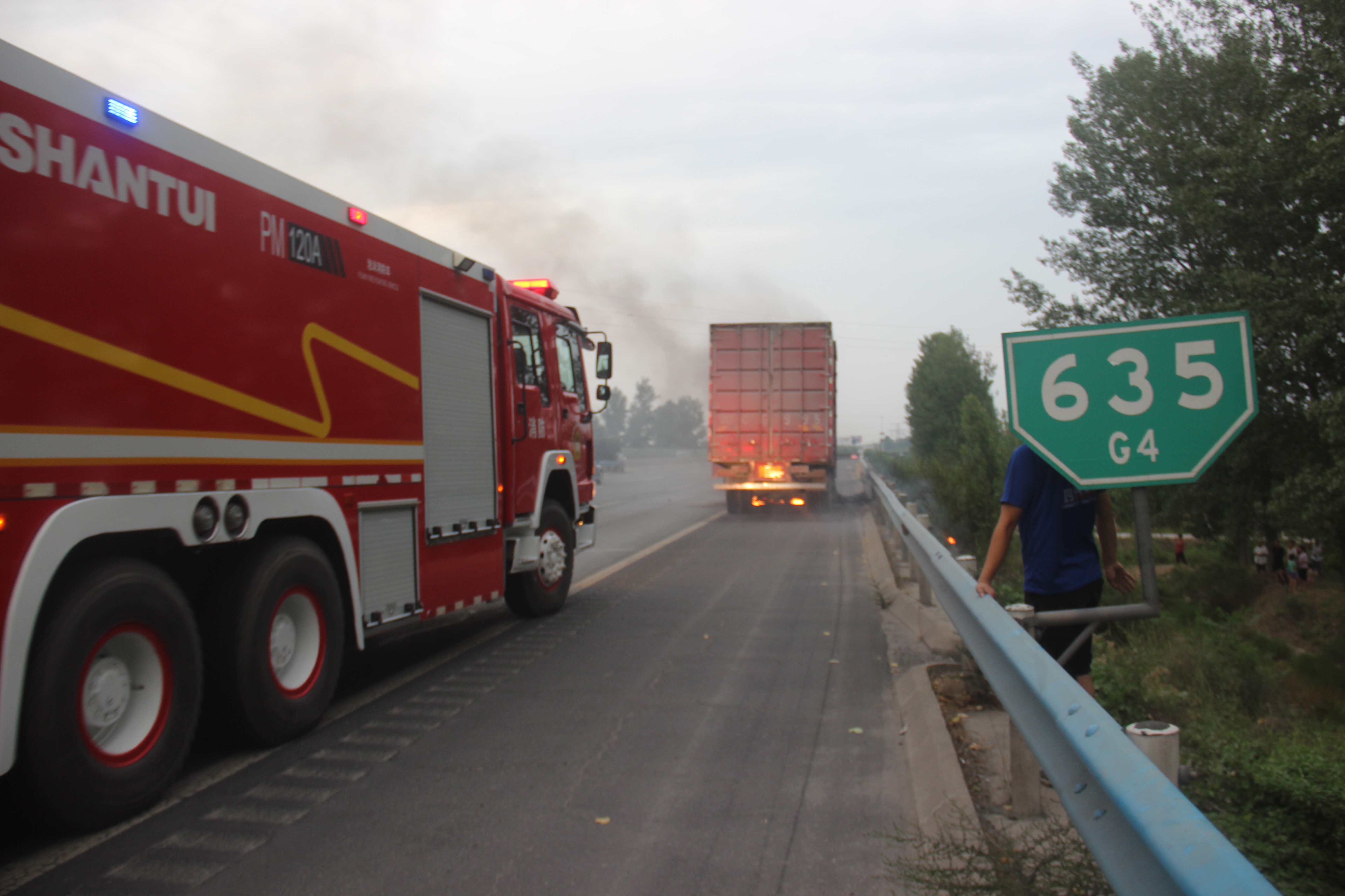 6月21日下午4时许,河南高速交警八支队巡逻车正在辖区执行巡逻任务,保证高速道路的畅通以及来往司乘的安全。在由北向南巡逻至京港澳高速西半幅635公里处时,发现路边应急车道内一辆货车起火,浓烟滚滚,便立即停车上前查看,同时呼叫消防人员赶往现场灭火。