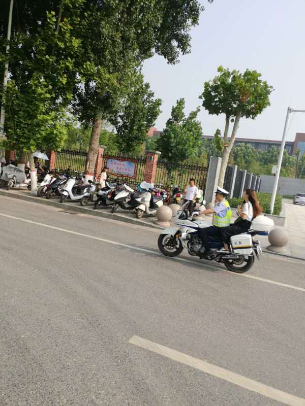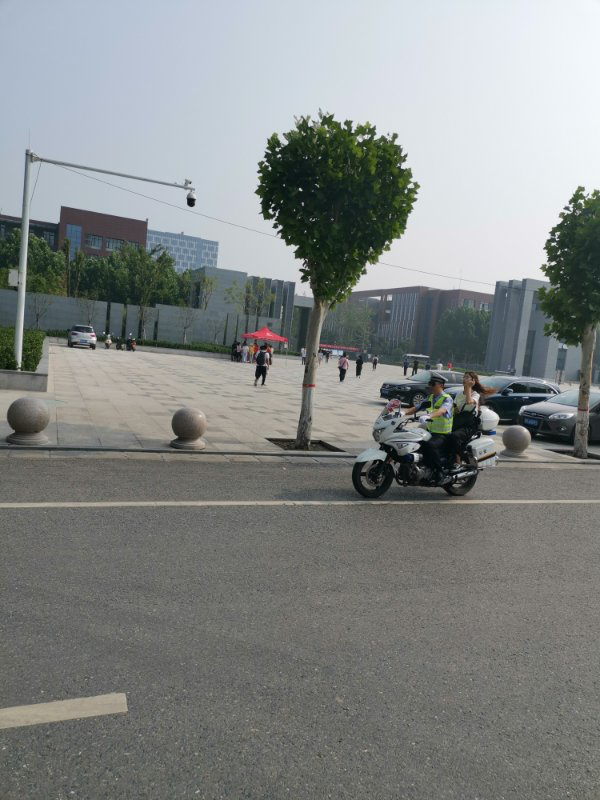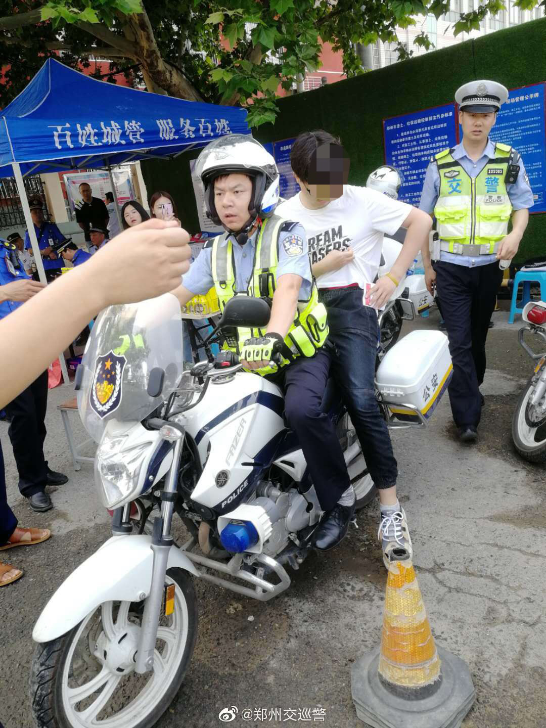 2019年6月7日8点45分左右,在郑州第七十一中考点门口一名参加专升本考试的张同学准备进入考场时突然发现身份证忘到家里了,慌张无措。在此执勤的交警一大队民警赵景潮和孙楠主动向前询问考生情况,得知该张同学家在远在郑州西开发区。