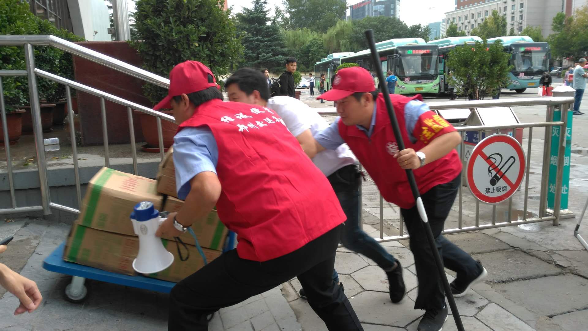 至11时,随着客流的急剧增加,总站整个候车大厅都站满和坐满了等车的旅客,每个候车区域志愿者都提前用一米线杆围成多个排队通道,每个候车区、每条线路都安排有维持秩序工作人员,引导旅客排队秩序上车。特别在登封和禹州候车区,当候车区不能满足持续激增的客流时,工作人员将人员引至车场和十公司院内进行分区候乘。由于短时间内登封、禹州客流出现积压现象,总站积极与协调客运一公司和七公司组织车辆,适时加班,大大缓解了运力不足问题。此外,调度室还根据较大客流线路,全力组织回程车加班,提高车辆实载率,并加密缩短发车班次,全面实行流水发班,减少了旅客改签的步骤和时间。