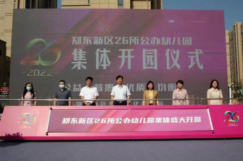 人生百年,立于幼学。9月1日上午,郑州郑东新区2022年26所公办幼儿园集体开园仪式在郑东新区永嘉第一幼儿园正式举行。郑州市教育局党组书记、局长楚惠东,郑东新区管委会副主任李秋红,教文体局局长张利刚,金光路办事处书记张万里以及各公办园园长和部分教师代表参与活动,仪式由郑东新区教文体局局长张利刚主持。