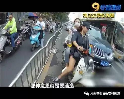 师凯:当时她到我跟前以后,离我有一两米的距离,突然一拐把,一加电门,要逃逸,而且还夹在两辆车中间,我一看这种情况,更不安全了,我就上前抓住她的车把,上去准备拔她的钥匙。