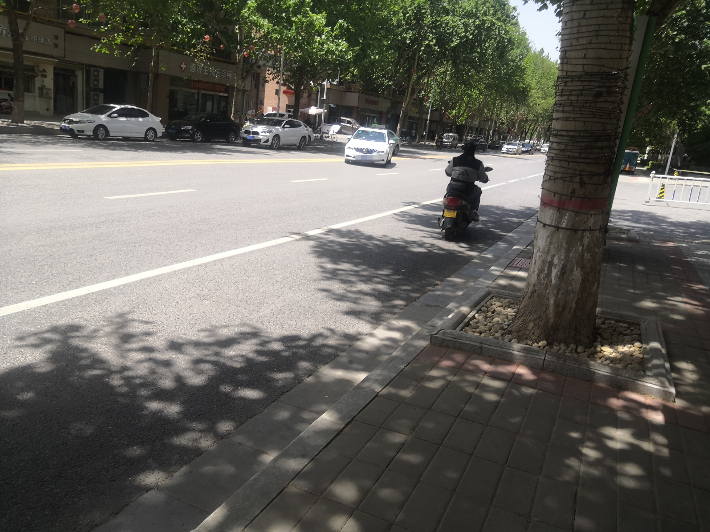 还是在该路口附近,一送外卖的男子骑着电车由东向西沿快车道驶来,快要行至附近路南某小区门口时,也是直接闯了双黄实线,由路北到达路南。而其实,如果他遵章行驶,再往西一点,就是一个可以允许调头的小路口。
