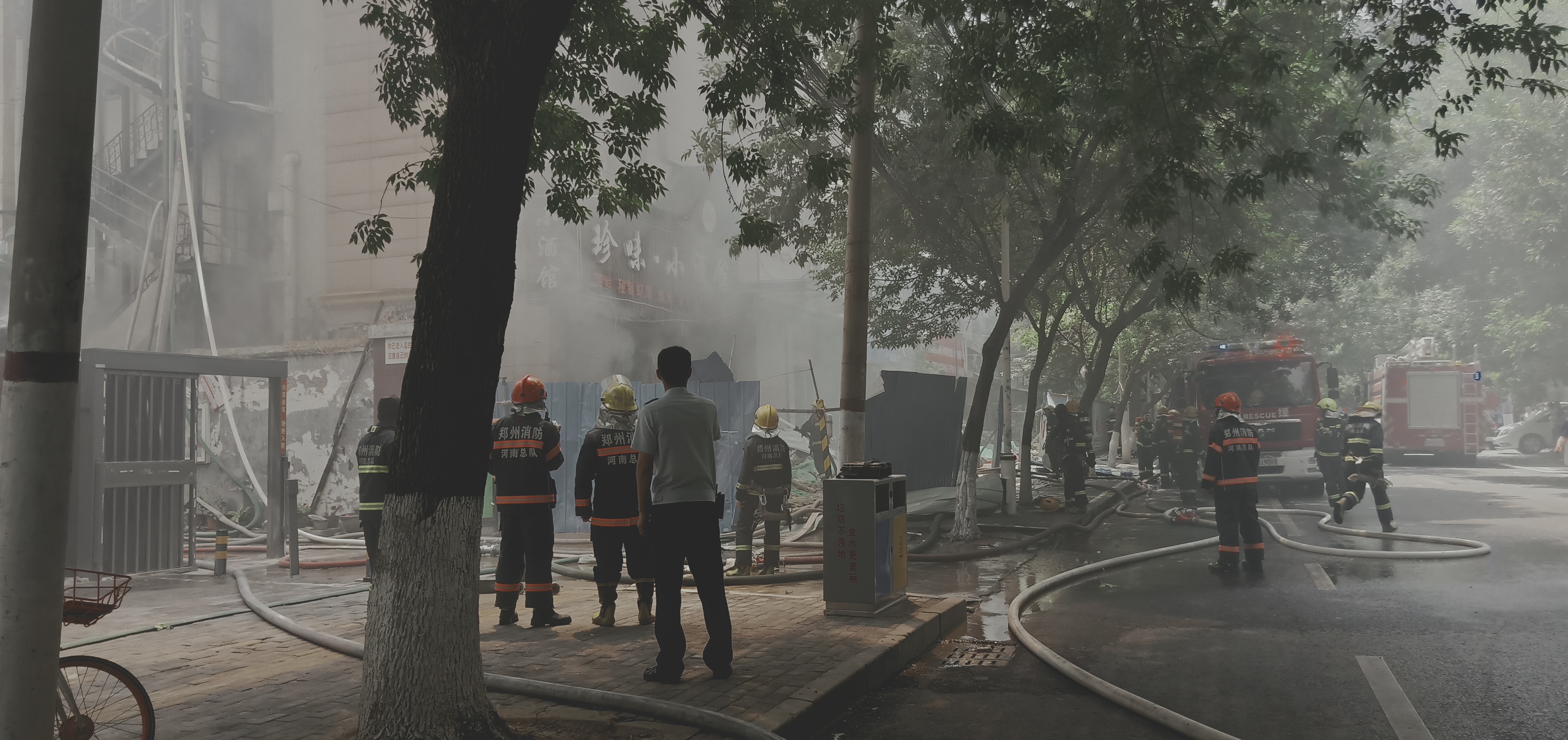 郑州一栋8层拆迁房失火,24辆消防车112名指战员前往救火