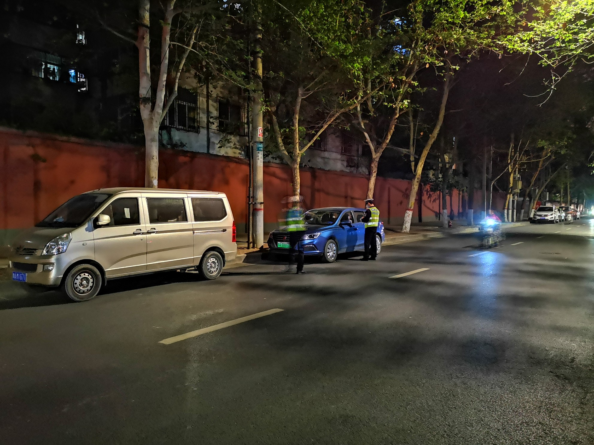 当晚8点半左右,经八路红旗路向东附近路段,两名交警正在路北侧贴条。
