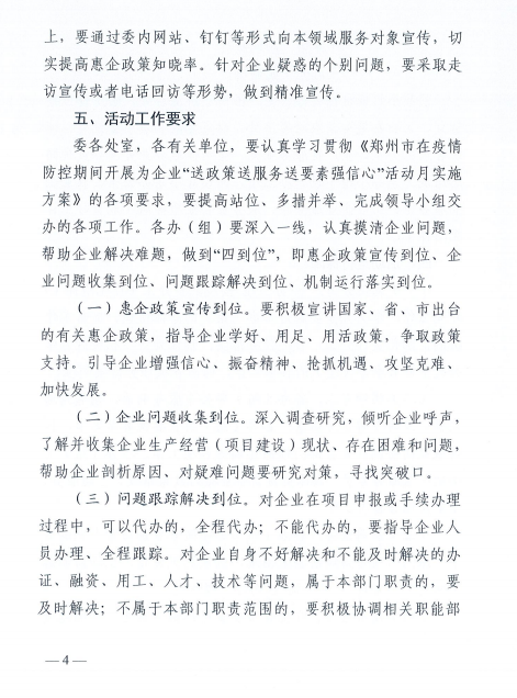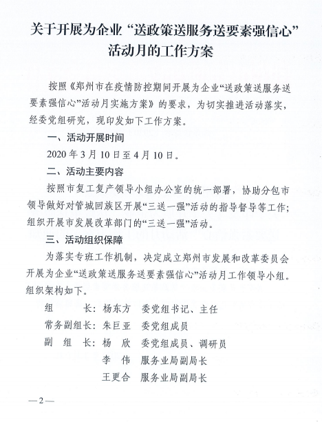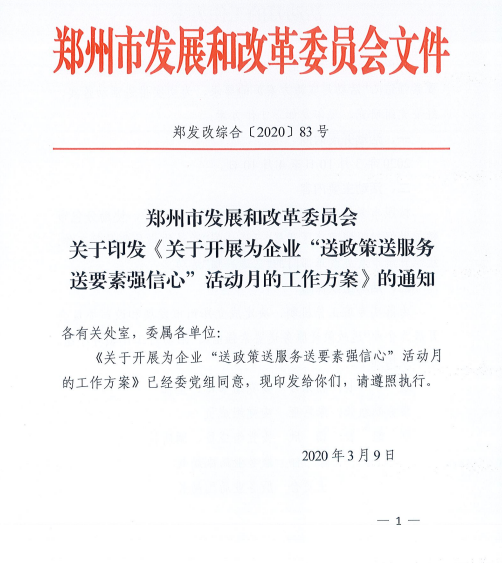 大河财立方消息 3月10日,郑州市发改委印发通知,关于开展为企业“送政策送服务送要素强信心”活动月的工作方案。活动开展时间为3月10日至4月10日。