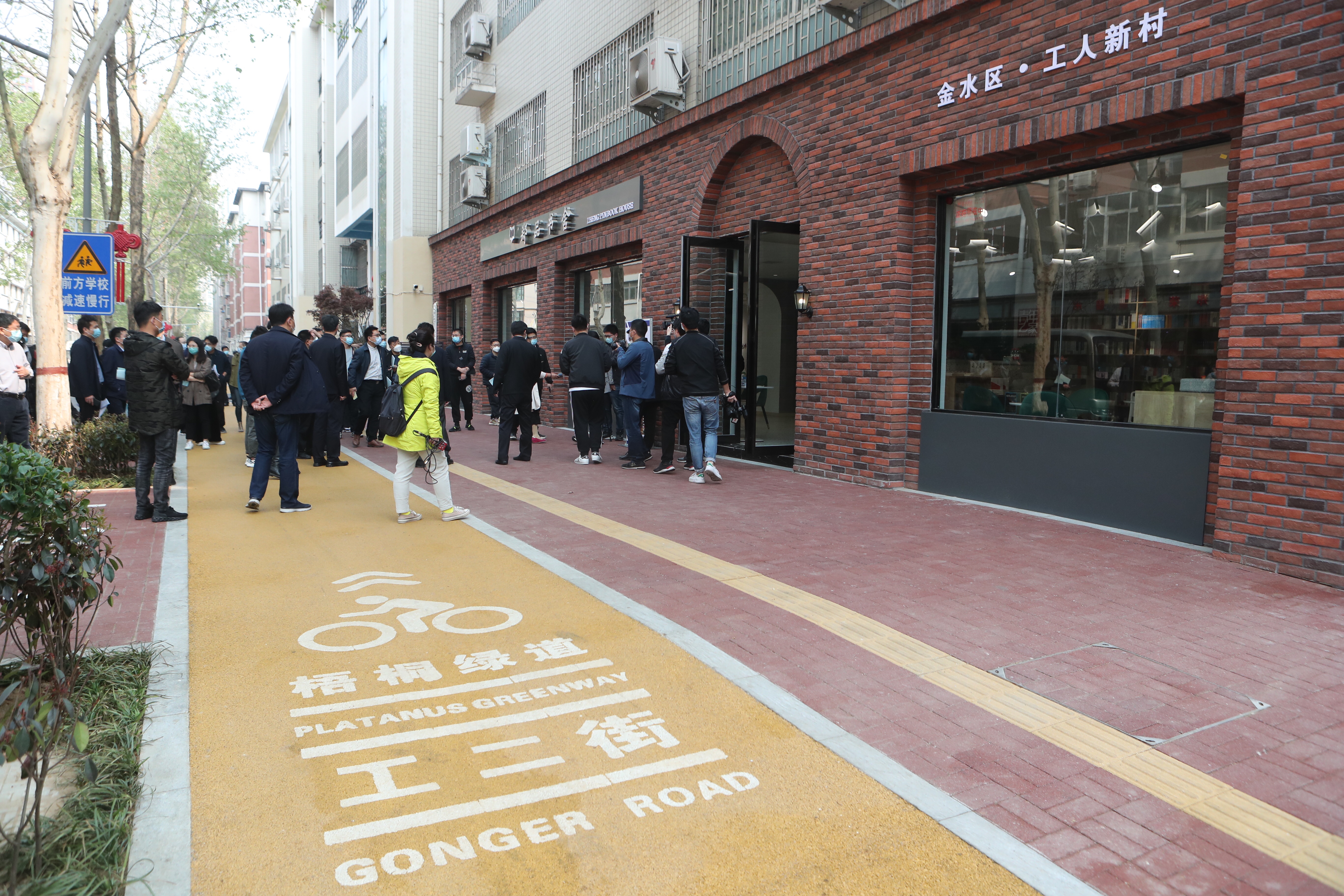 4月8日,记者走进郑州金水区工人新村,居民楼外墙已刷成崭新的砖红色,新增的小微游园里儿童在滑梯上玩耍,街道两侧树木林立,街角有体现工人奋进精神的文化墙。社区医疗服务站、老年人日间照料中心、城市书房一应俱全,书房温馨整洁,专门设置儿童阅读区。