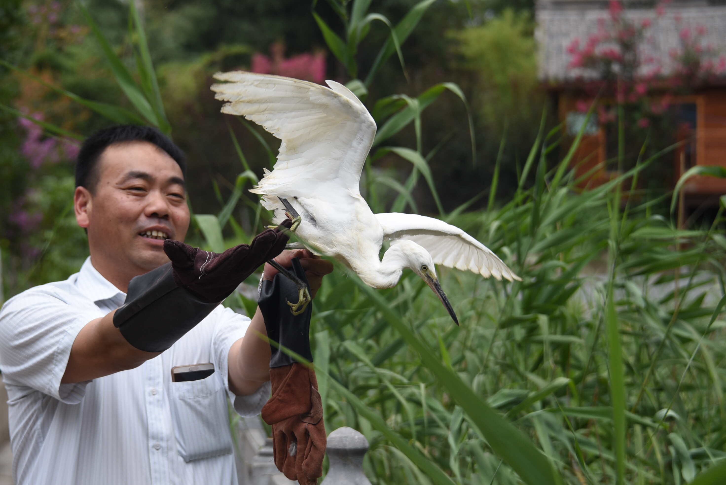 放完猛禽后,大家有来到一个池塘边,将两只白鹭放飞。两只白鹭一到池塘里便开始捕鱼,惹得大家一阵大笑。郑州市林业局新郑市野生动物救护分站站长陈彦恒称,该池塘有鱼有虾和水生昆虫,便于白鹭白鹭捕食,而高高的芦苇则便于白鹭躲避天敌。随后,几只夜鹭、鹌鹑、黑水鸡也被放飞到这里。