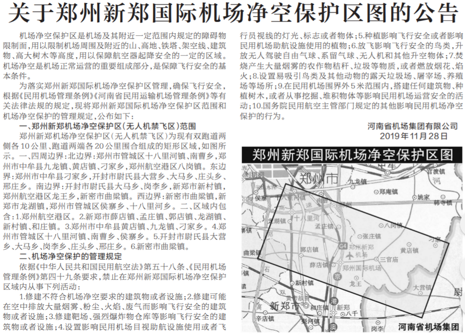 新郑国际机场无人机禁飞区公布,包含这些区域!