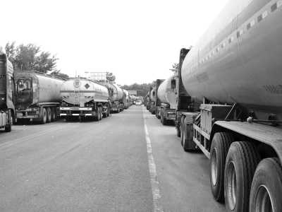 【现场】上百辆危险品运输车国道口排长队