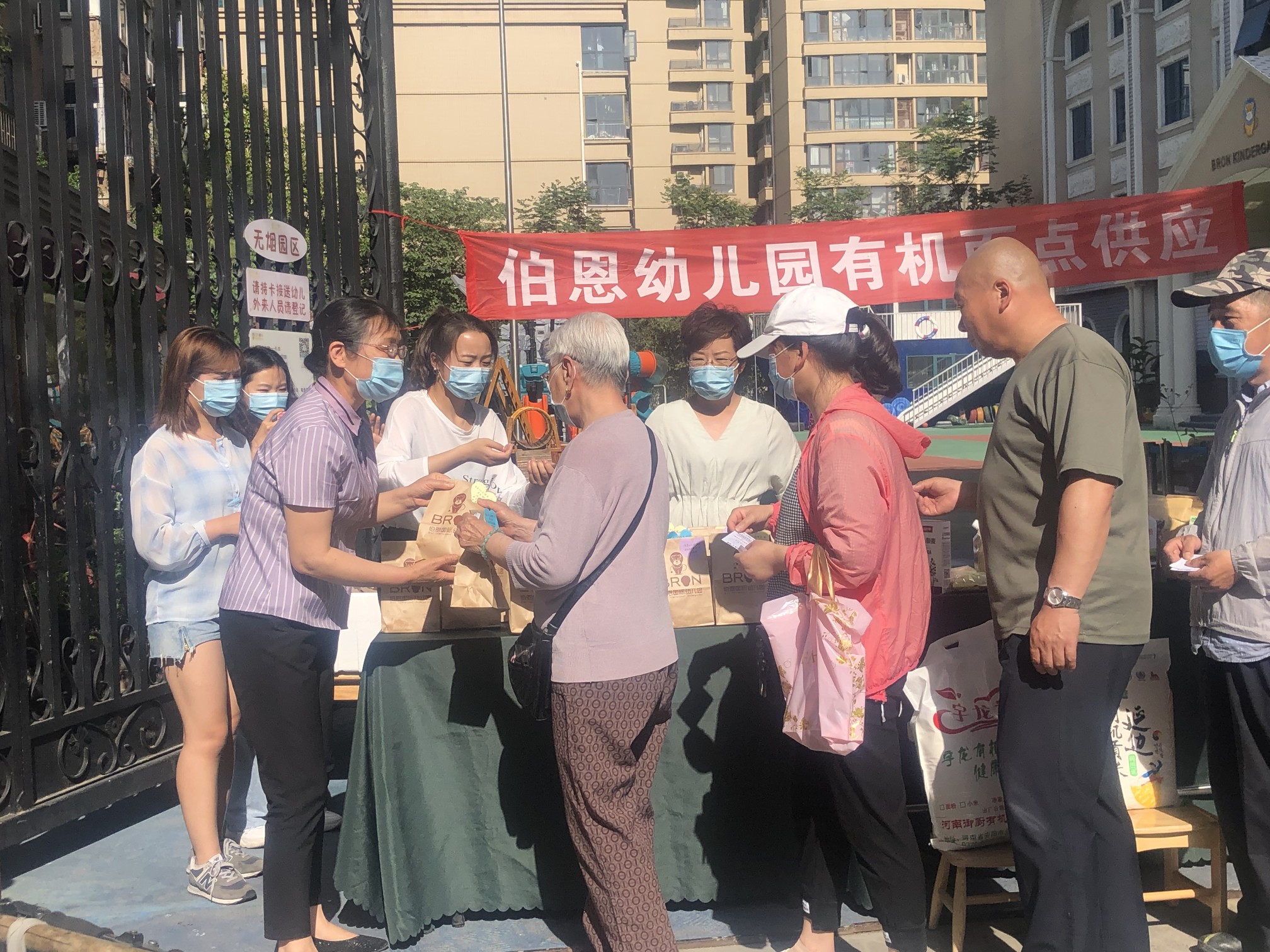 5月18日,郑州中原区工人路与陇海路交叉口一家幼儿园大门口,不少人排起了长队,或是掏钱购买有机面点,或是手持免费券来品尝。据了解,因疫情期间无法复学,该幼儿园无收入,便利用平时给孩子们做“有机餐”的优势,临时转行做起了“有机餐饮”,受到不少家长和市民的青睐。