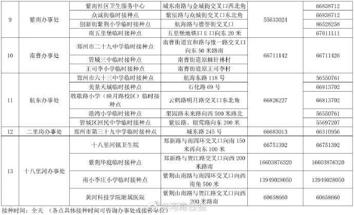 记者8月23日获悉,从今天开始,郑东新区19家新冠病毒疫苗定点接种门诊,将全面恢复接种。而在今早,记者了解到,郑州市各个辖区新冠疫苗临时接种点和固定接种点也在陆续恢复接种。此前,为了助力核酸检测和12-17岁青少年新冠疫苗接种,部分接种点暂停了成年人疫苗接种服务。