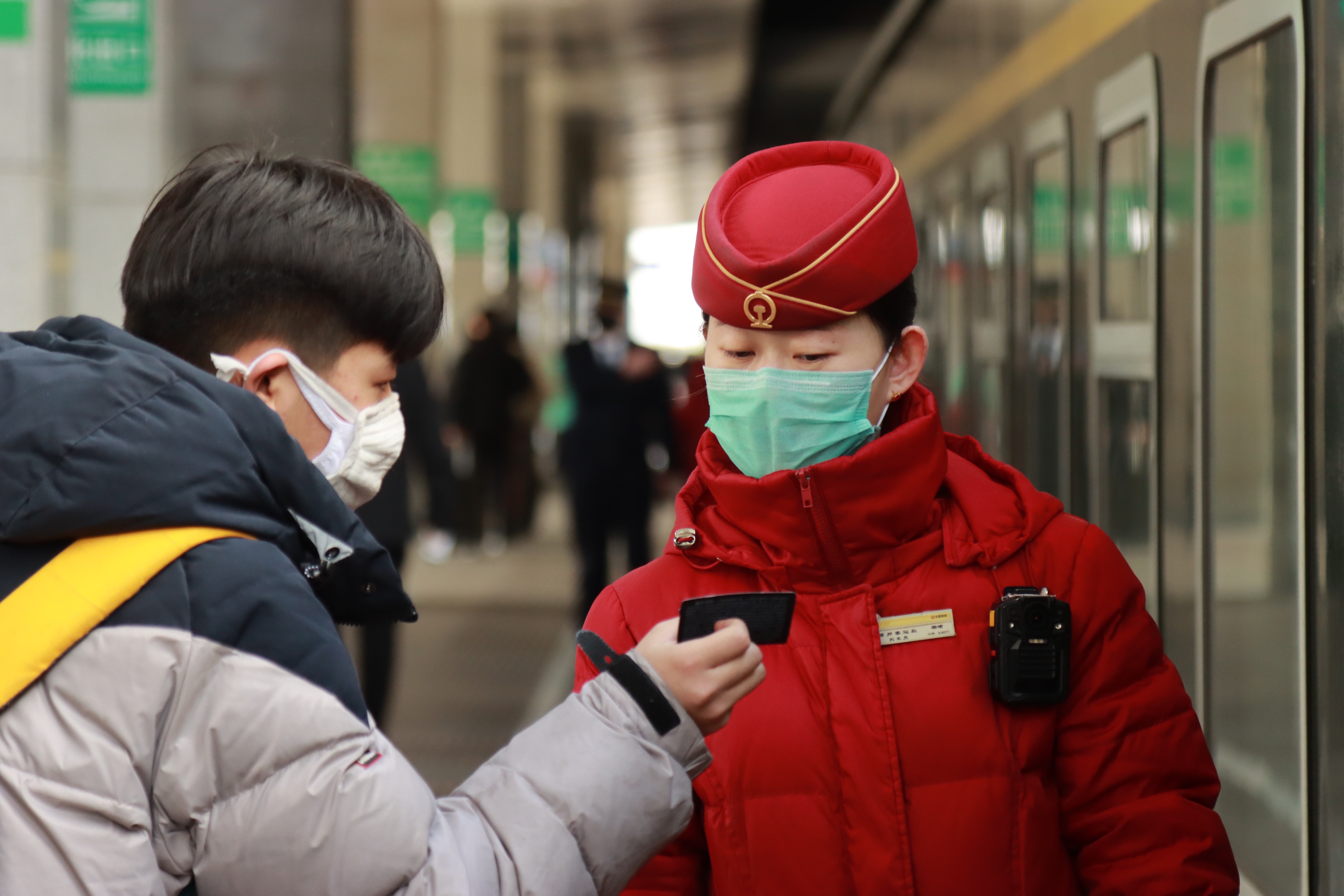 春运以来,该集团公司2282个基层党组织、26300多名党员沉入一线,成立党员突击队2933个,在售票窗口、安检查危、实名制验证处设立党员先锋岗,在应急物资运输车站设立党员服务台,在车库消毒现场设立党员工作站,让党旗在防控疫情斗争第一线高高飘扬。各级党组织和广大党员用实际行动彰显了“守初心”“担使命”的本色,全力支持打赢疫情防控阻击战。 (摄影:许伟 孙雪峰)