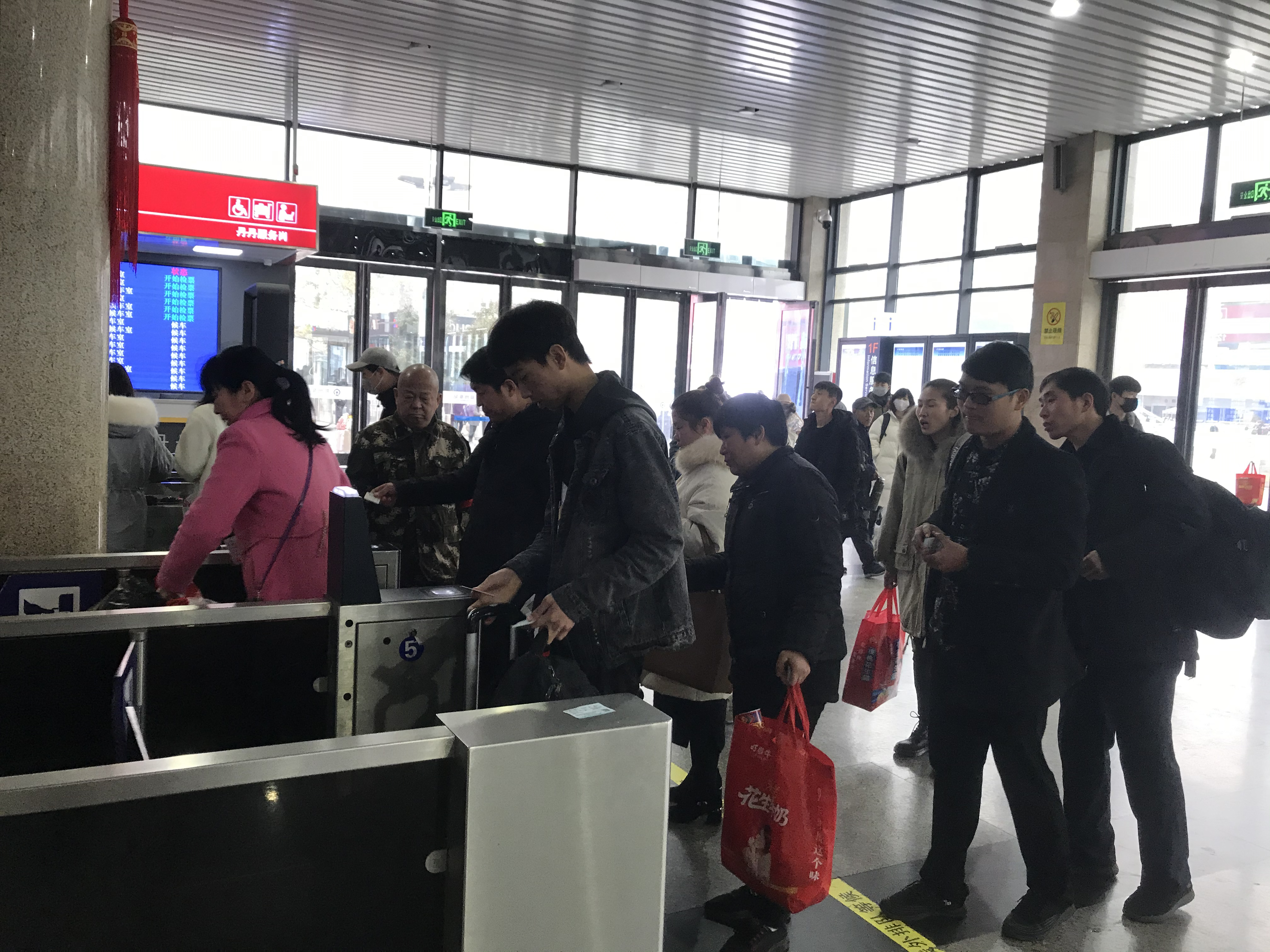 火车站进站口,大多数旅客没有戴口罩