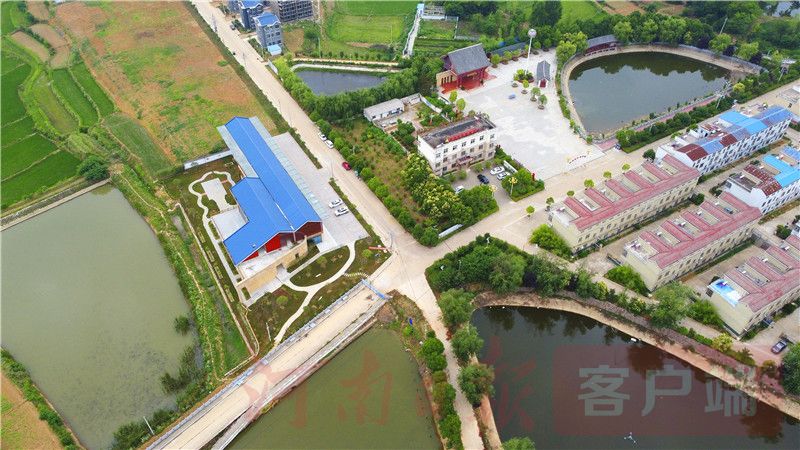 空中看晏岗村的“数据扶贫车间”和村庄