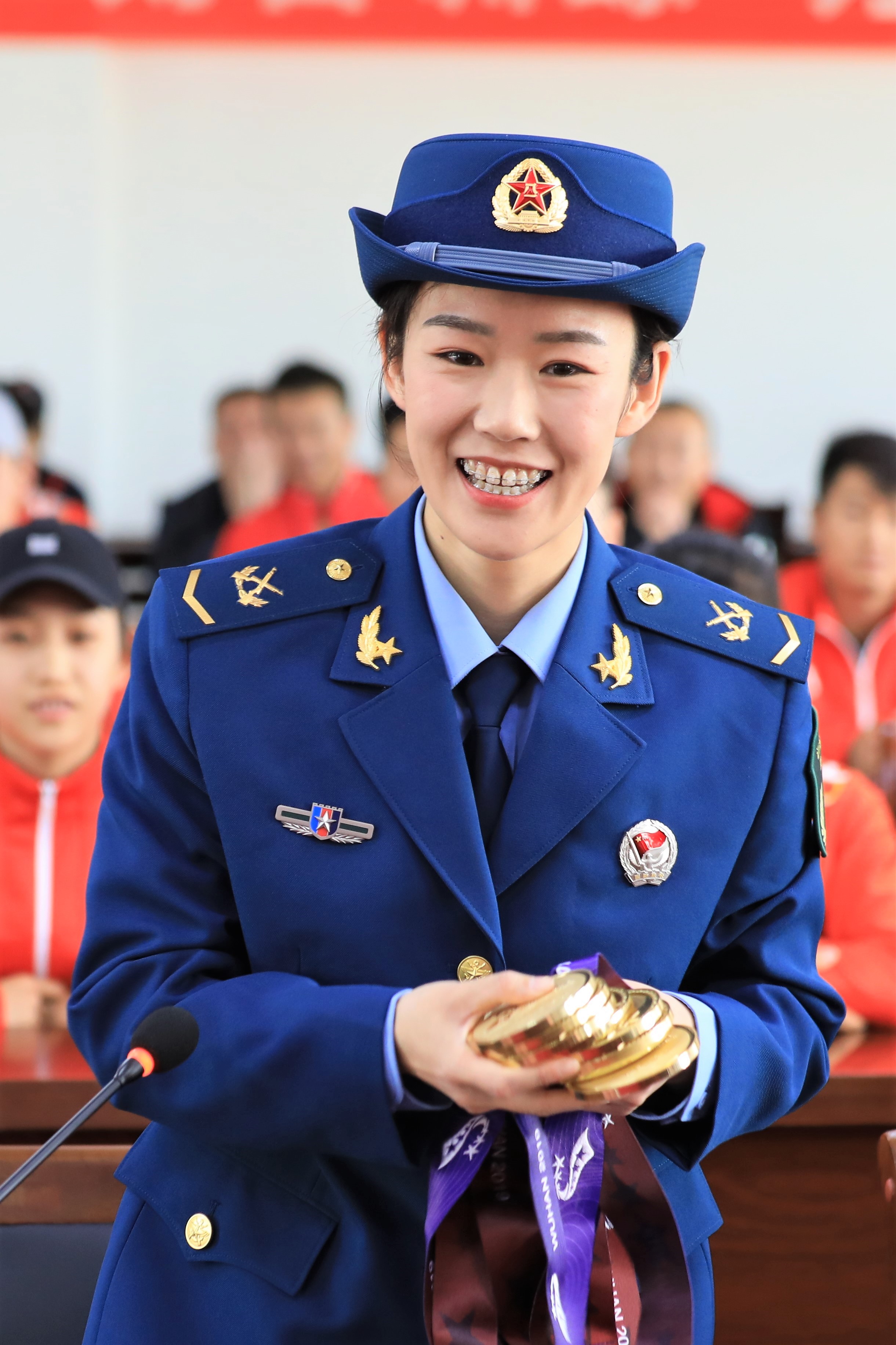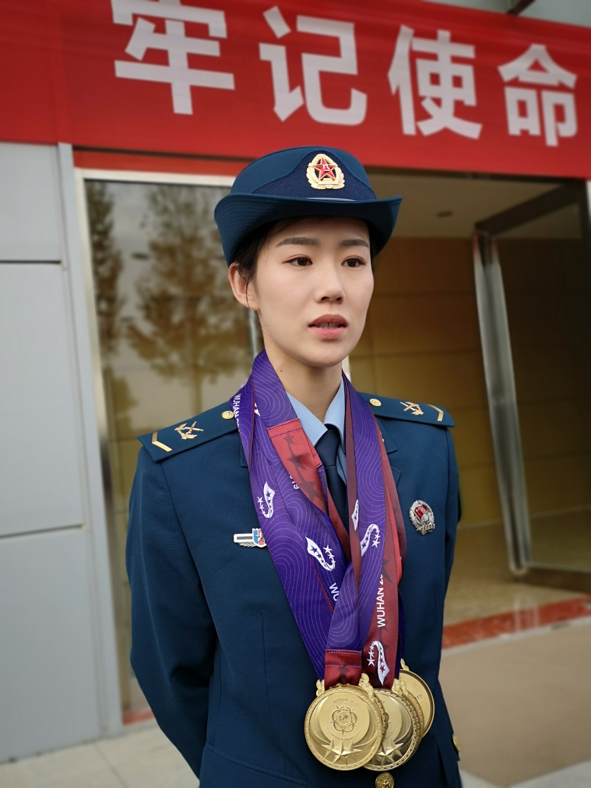 11月11日,是中国空军成立70周年纪念日,这天,河南省航空运动管理中心举办仪式,欢迎从军运会上载誉归来的航空英雄。21岁的郑州姑娘邢雅萍身穿军装,英姿飒爽,脖子上挂着的8块金光闪闪的金牌,她是军运赛场上的“八冠王”,也是个人夺金数量最多的“金牌王”。
