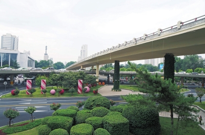 据崔科长介绍,截至7月22日,郑州市“四桥一路”的梁底、桥柱、防撞墙基底处理与重新喷凃粉刷施工已基本完成,总工程量为20.72万平方米。7月底前全部完成粉刷任务,使“四桥一路”立交桥面貌焕然一新。