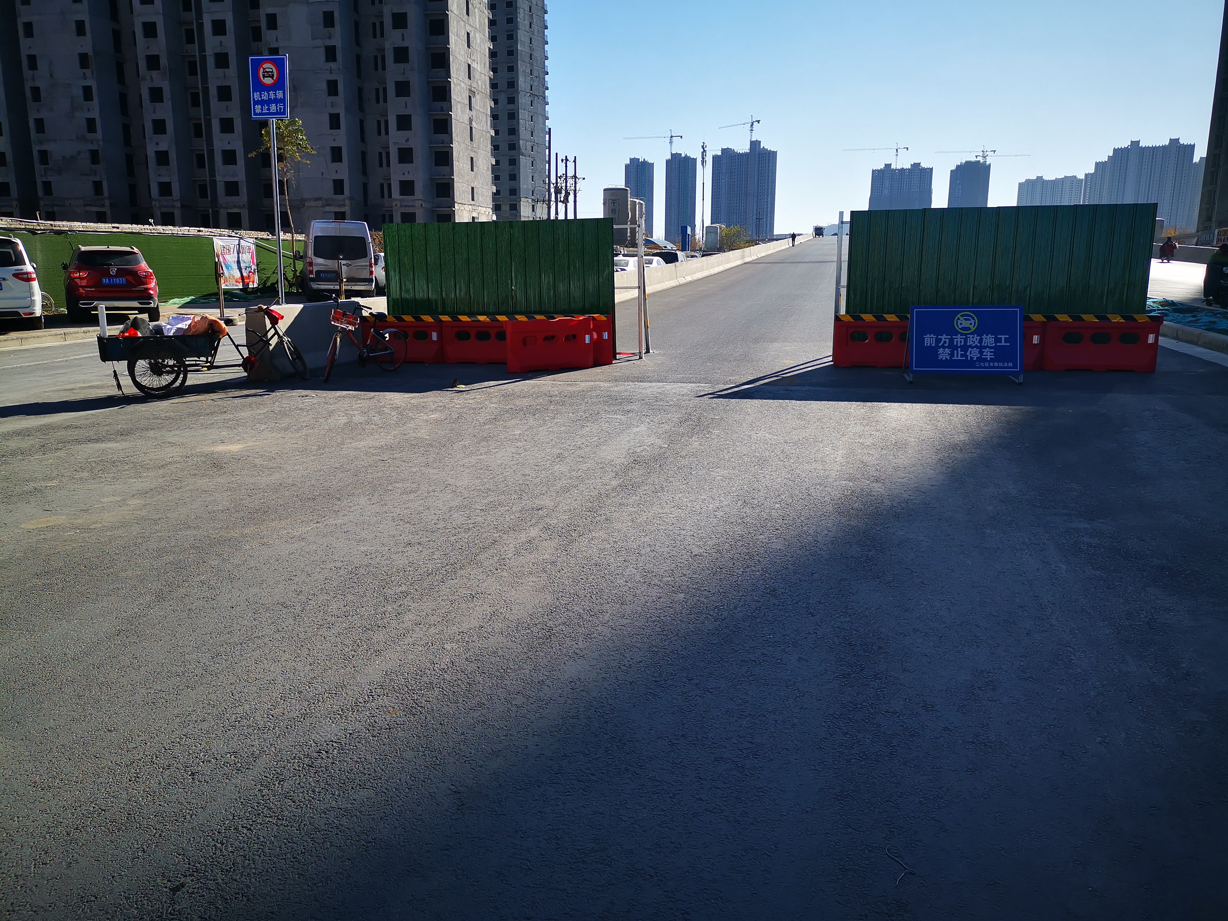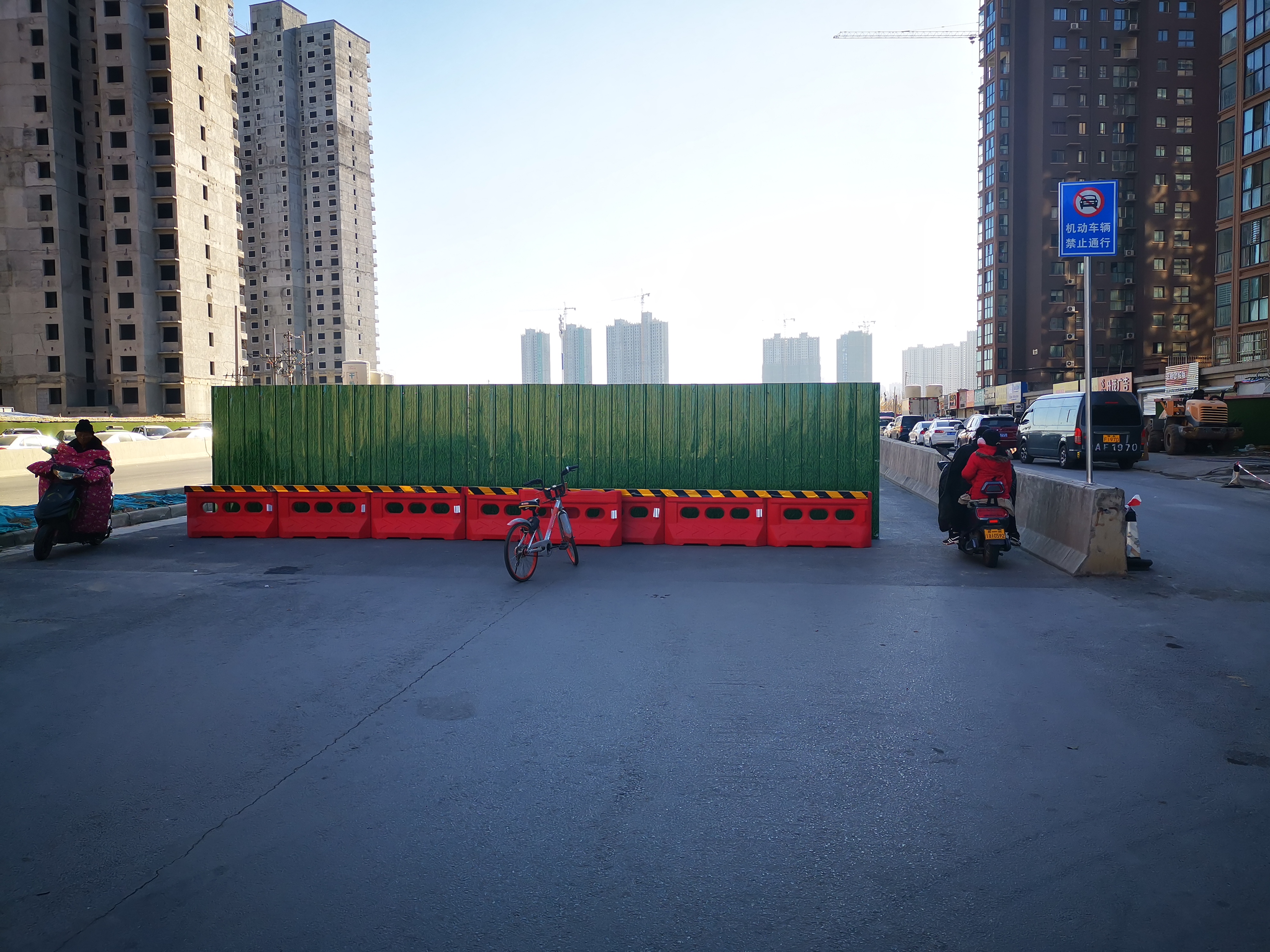 12月3日,记者在二七区碧云路跨南水北调大桥附近看到,大桥的南北两侧已设置了蓝色隔离围挡。其中,桥面东西半幅均设了围挡,围挡被三角钢架固定在地上,围挡上沿粘贴着反光条,桥面仅留1.5米的缺口,供行人和非机动车通过。南北两侧的大桥围挡旁,均竖着一个“机动车辆禁止通行”的提示牌。而以往停满私家车的桥面,除了一两辆车仍停在桥面,其他车辆均已驶离。