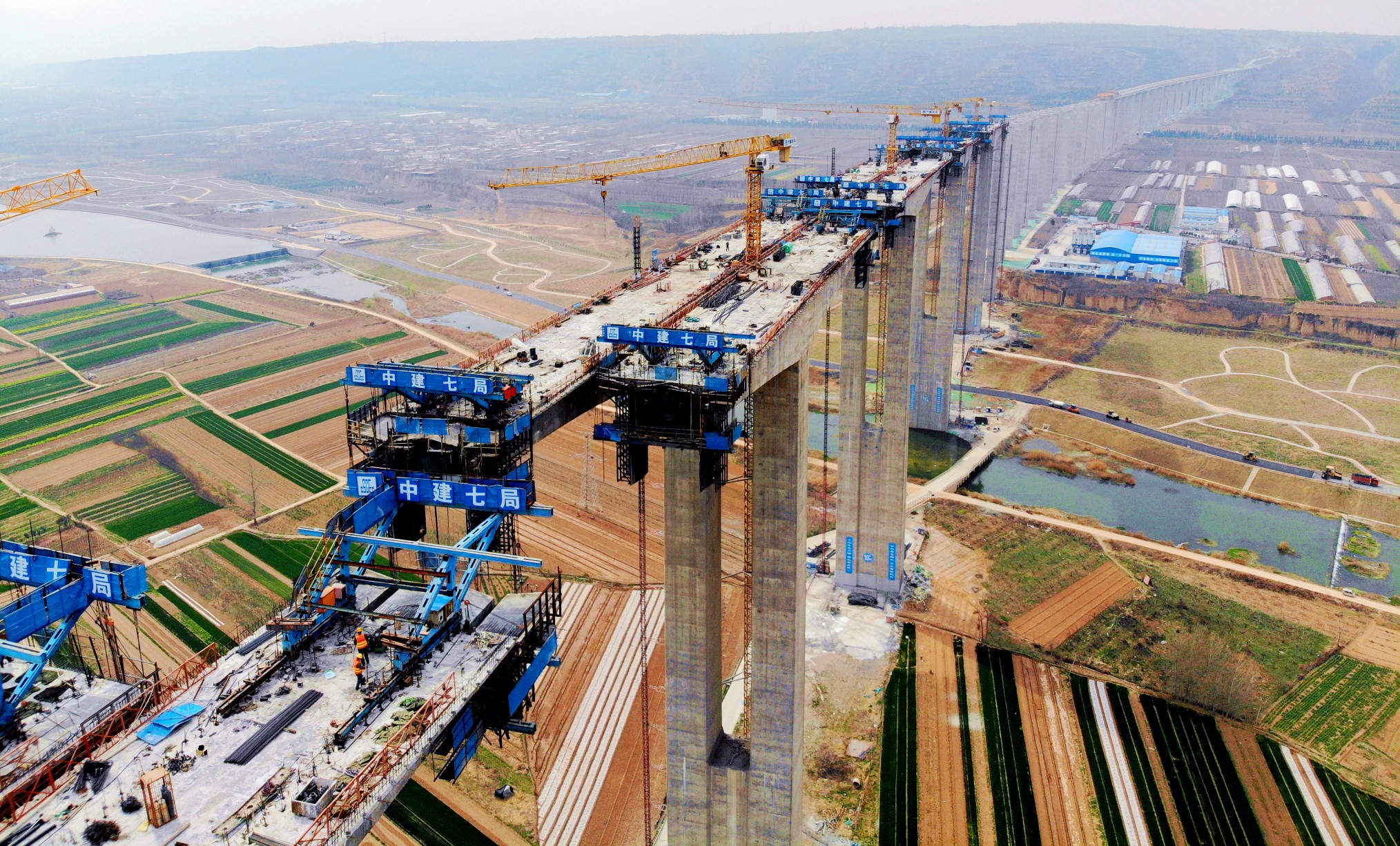 3月17日,记者从中建七局交通公司获悉,由该公司承建的河南第一高桥——三门峡市国道310南移新建工程弘农涧河特大桥,日前全面复工。